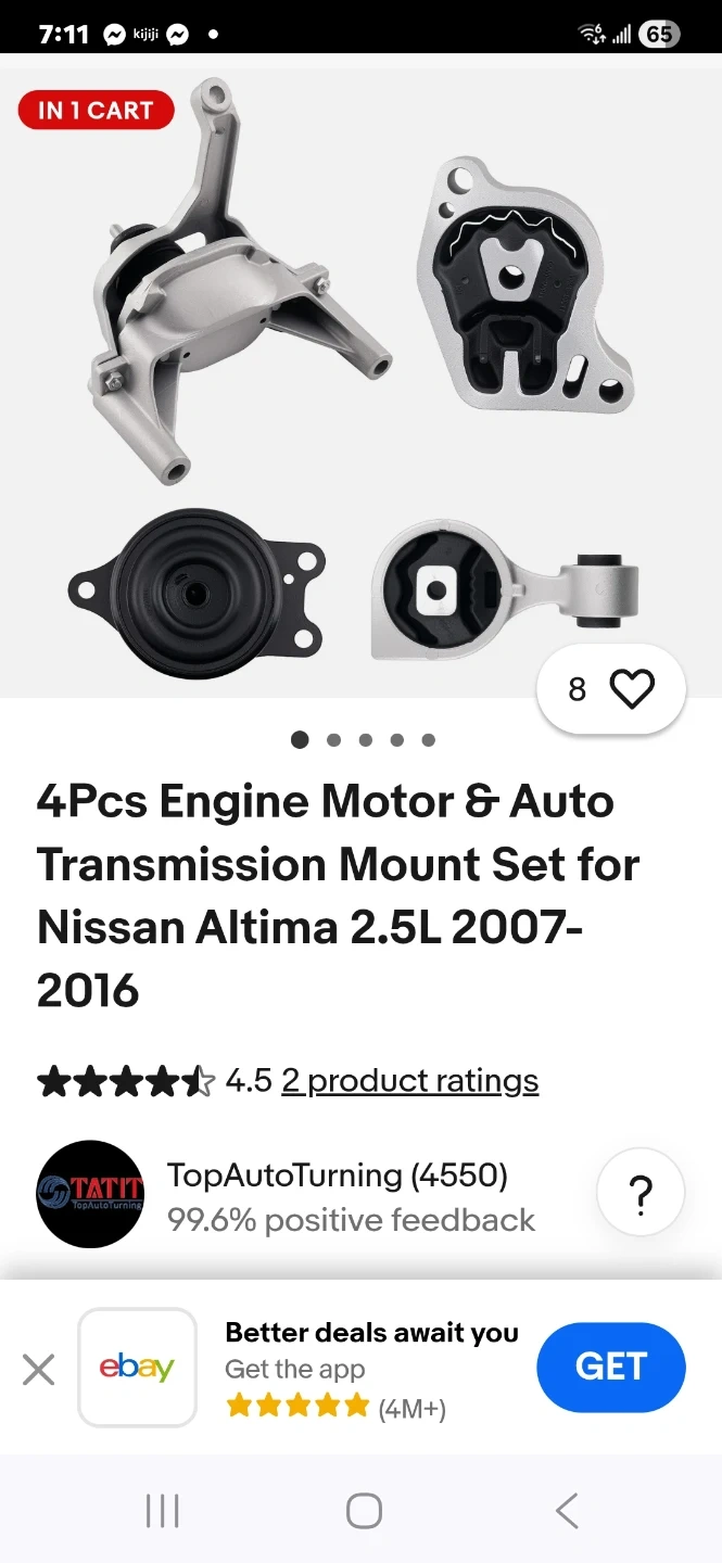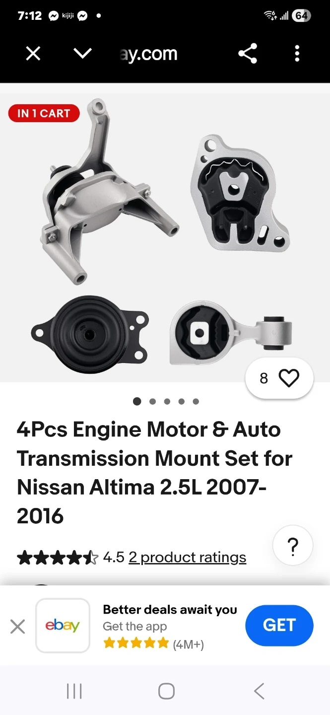 This is a 4-piece engine motor and transmission mount set. It's constructed with an iron frame and a rubber core. Fits Nissan Altima 2.5L models from 2007-2016.