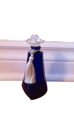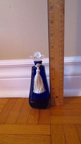 Vintage Perfume Scent Bottle Cobalt Blue Crystal Flower