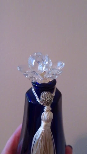 Elevate your collection with this exquisite Vintage/Antique Perfume Scent Bottle. Crafted in Italy, this piece features a stunning cobalt blue crystal flower design, complete with a delicate tassel and stem, that exudes a classic charm and elegance. Ideal for display or as a functional keepsake, this unbranded bottle is a testament to fine craftsmanship. Although not handmade, its intricate details and timeless appeal make it a must-have, capturing the essence of a bygone era in a single, captivating vessel.