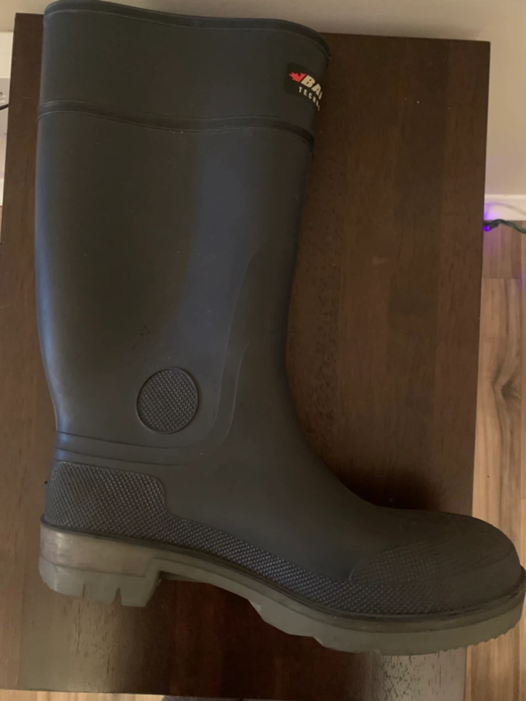 2 Waterproof rubber work boots. These boots feature a durable rubber construction for wet conditions. They're designed for protection and comfort. Excellent for outdoor work!