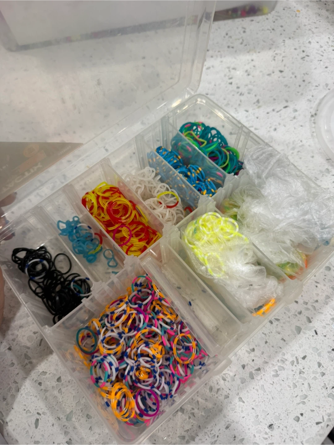 A large assortment of colourful rubber bands suitable for loom bracelets and other crafts. Includes a variety of colours and a compartmentalized storage case. Great for creative projects!