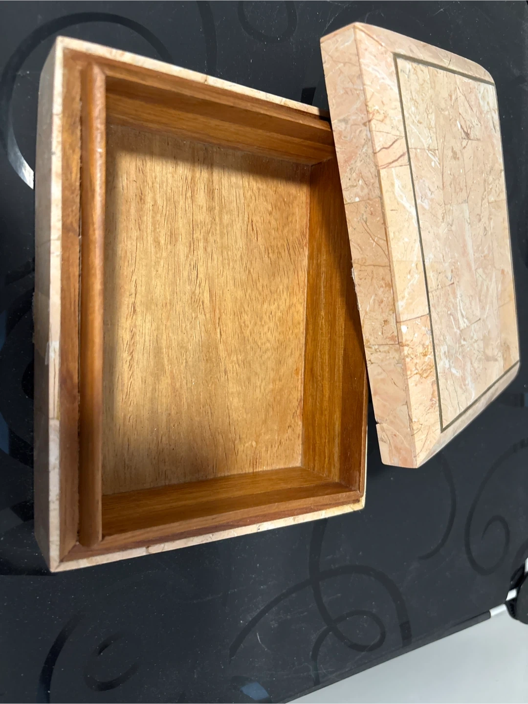 Marble Inlay Decorative Box with Wooden Interior