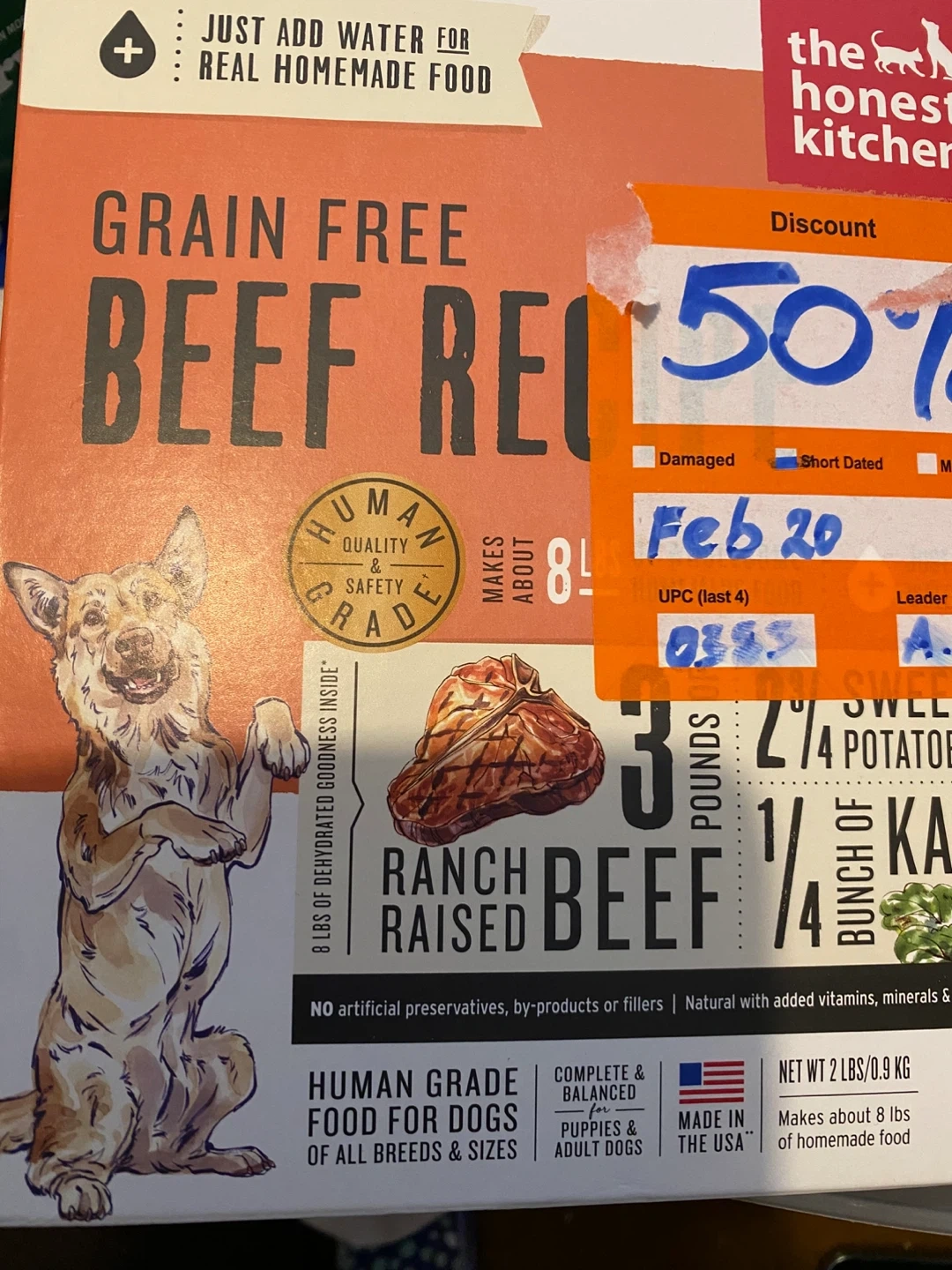 Grain-free beef recipe dog food that's human grade. It's made with ranch-raised beef and no artificial preservatives. Best by February 20, 2026.