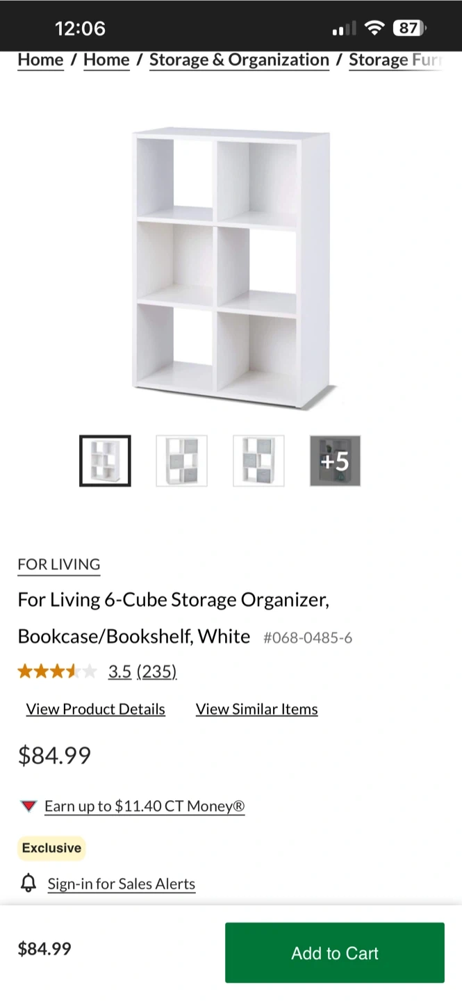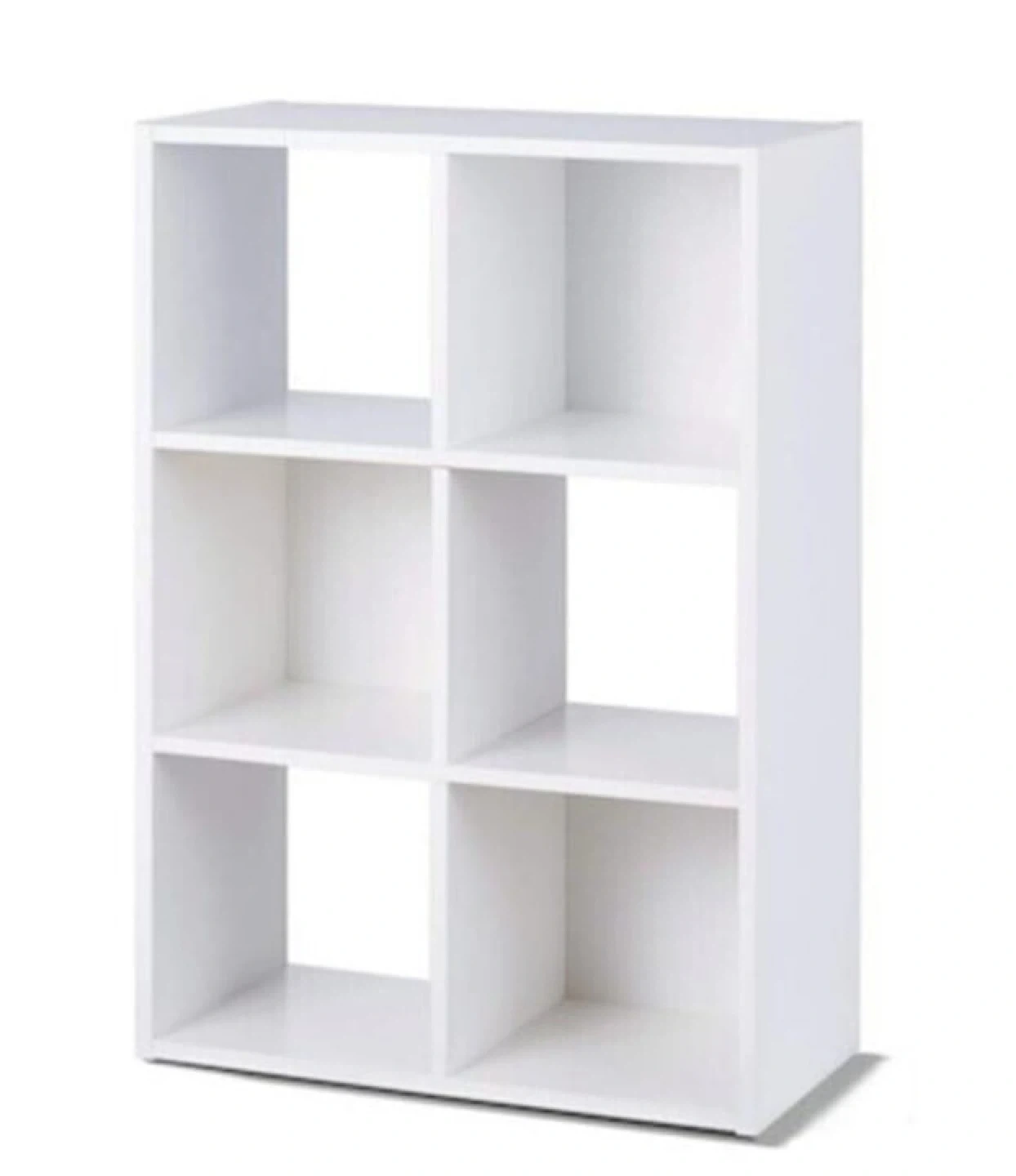 White 6-cube storage organizer bookshelf. Offers versatile storage solutions for books, decor, or other items. Easy to assemble and fits in most rooms.