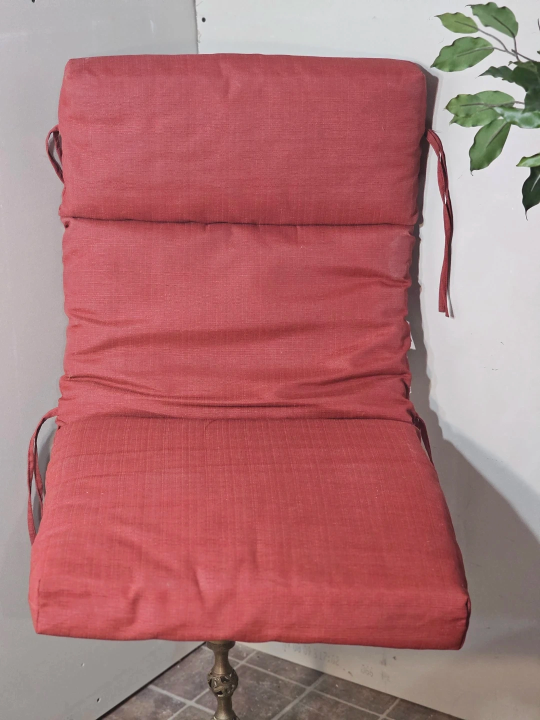 This is a red patio chair cushion but am selling all 4. . It's made of a durable fabric and has ties to secure it to a chair. Adds comfort to your outdoor seating!