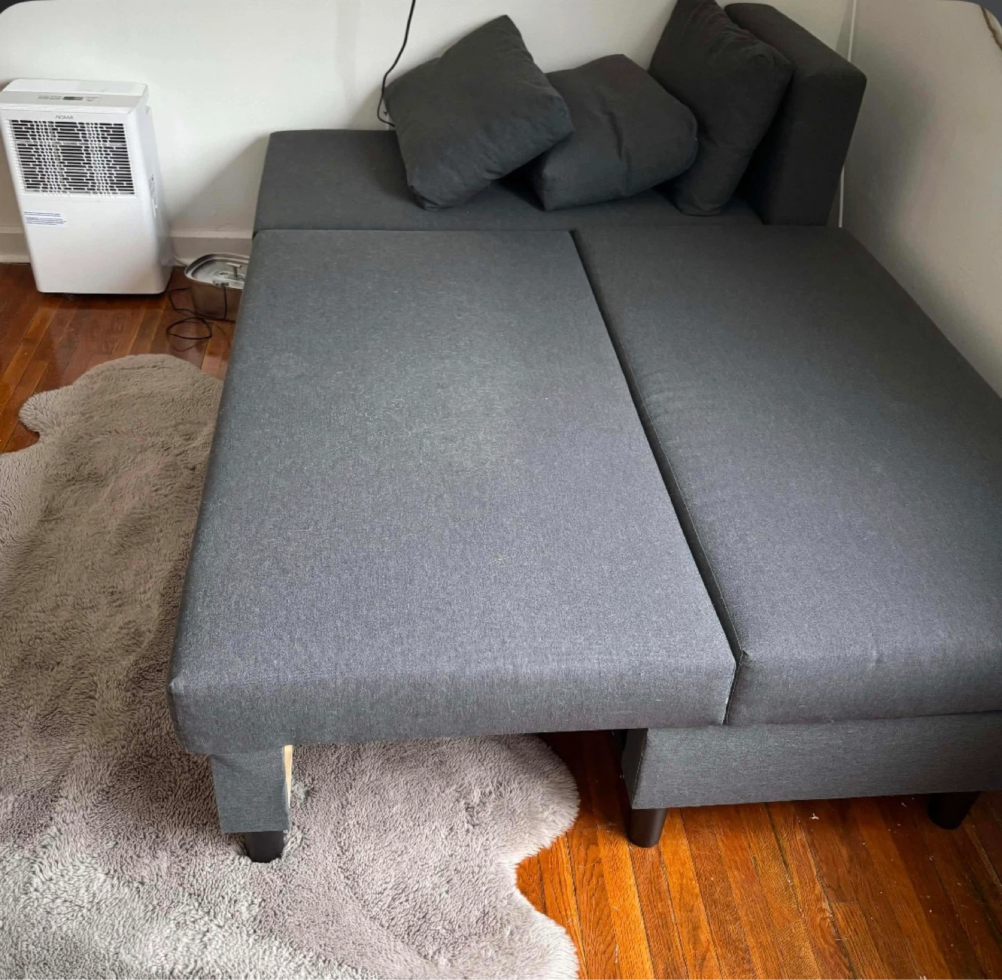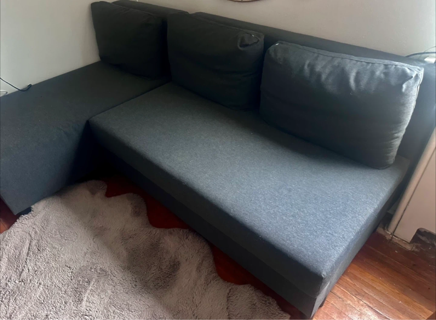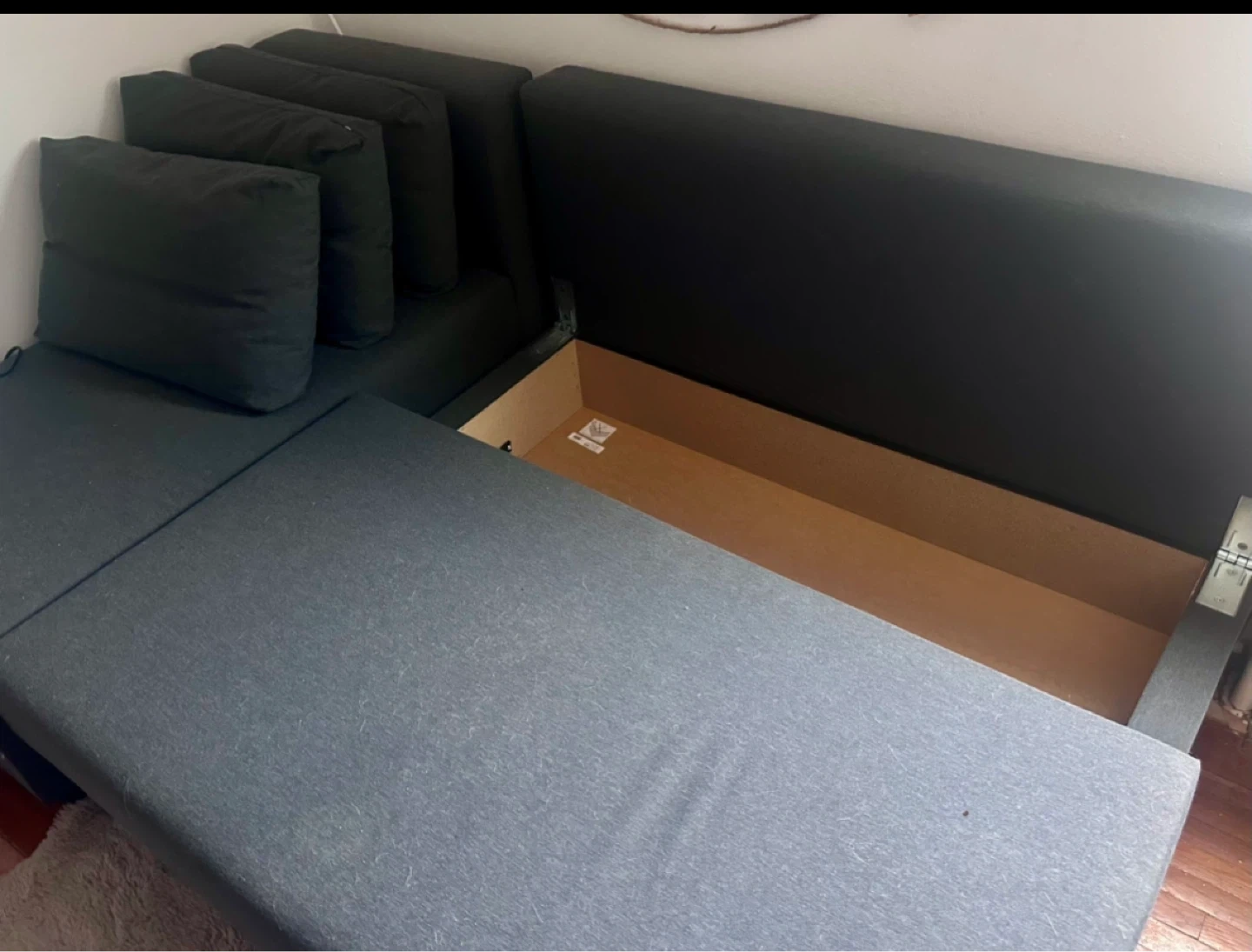 Selling Ikea Friheten sleeper sectional sofa in charcoal colour. It's in great shape and has a convenient storage compartment underneath the chaise. Perfect for small spaces or a guest room!