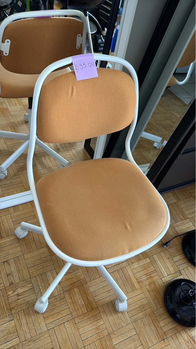 Office Chair with Tan Seat and White Frame