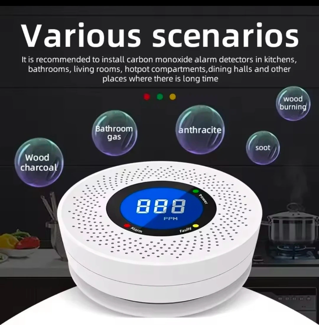 NEW CO Alarm CO detector Carbon Monoxide, Digital, AAx3 Battery, High Precision and Sensitivity, 90dB Alarm