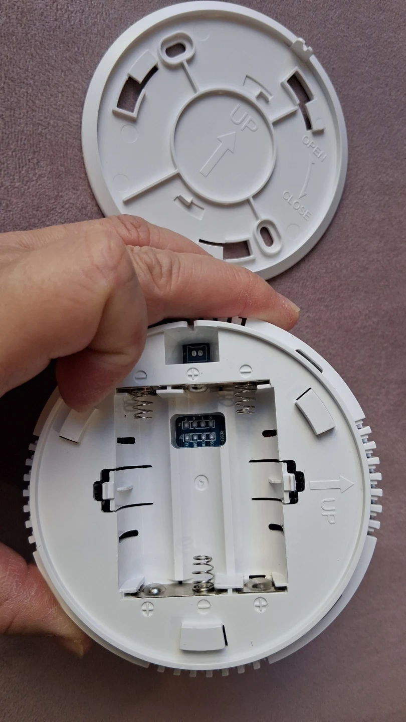 In alarm status, press and hold the self-check/mute button on the side of the housing for 1s.