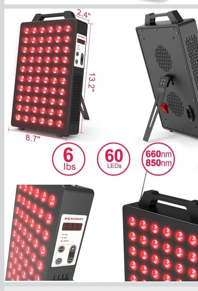 Red Light Panel with 60 Dual Chip LEDs, Remote Control, Timer, Hanging Kit & Adjustable Stand for Home Office & Gym, BO-300 (Black). Feel free to message if you have any questions!