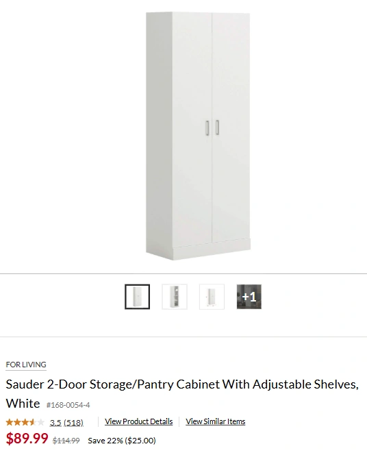 Sauder 2-Door Storage/Pantry Cabinet With Adjustable Shelves