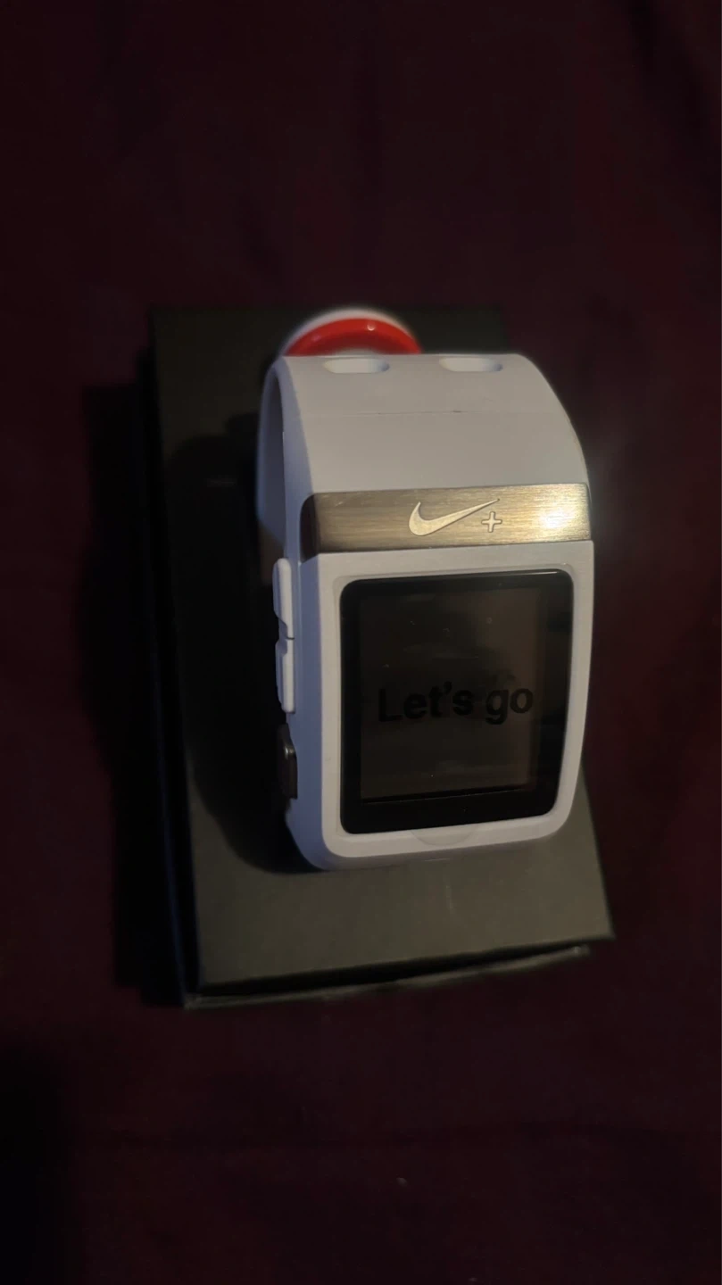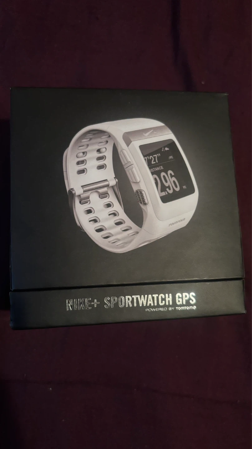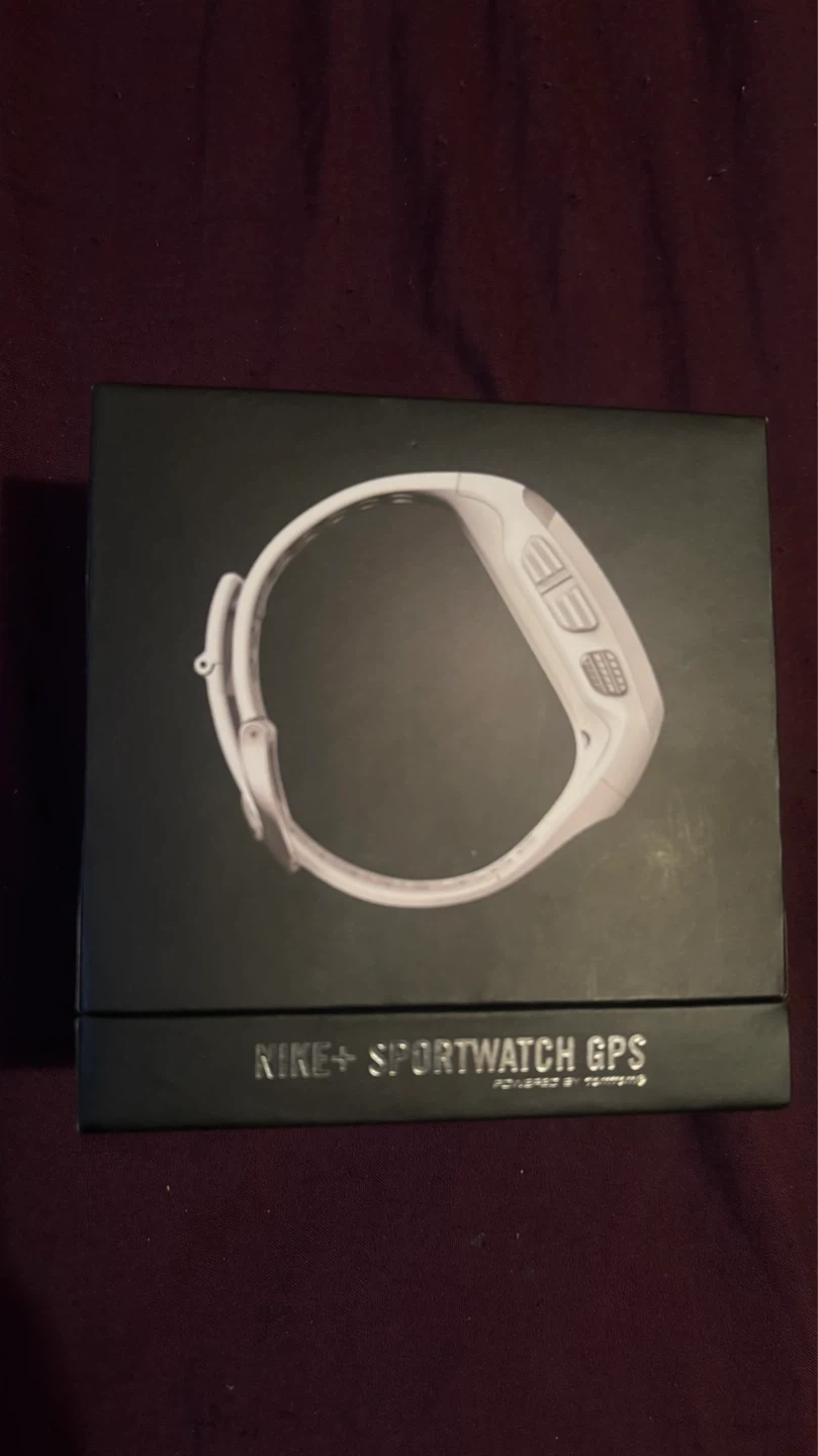 This white Nike+ Sportwatch GPS is powered by TomTom. It tracks distance and has a built-in GPS. Original retail price was $170.00, with a sale price of $134.99.