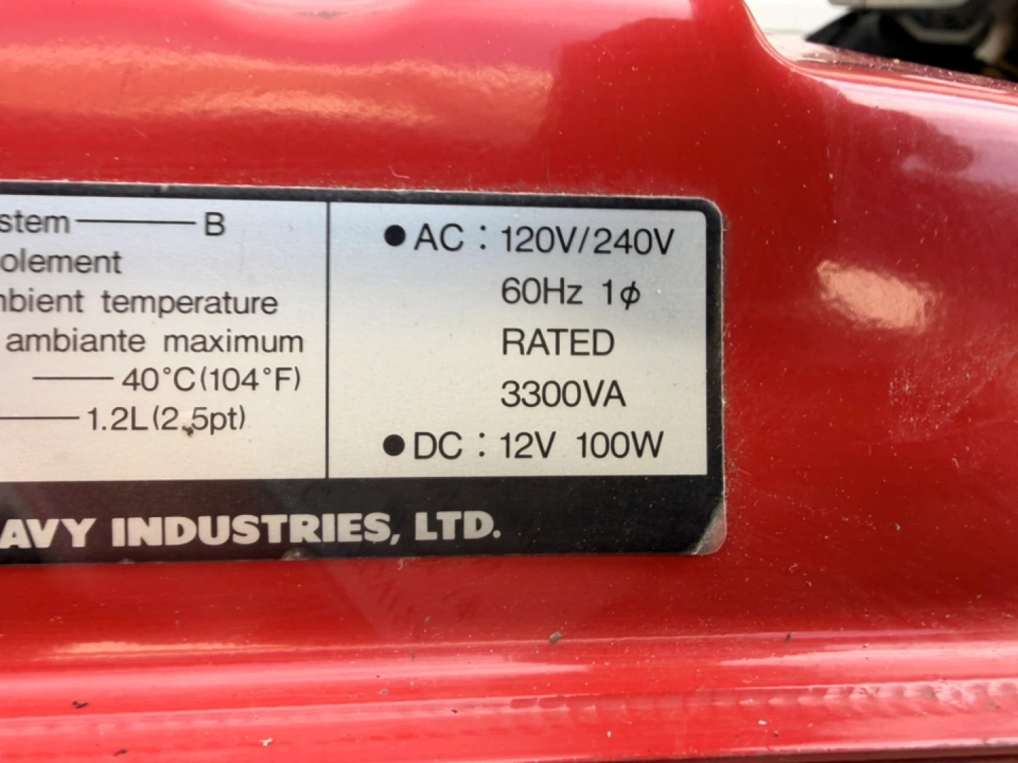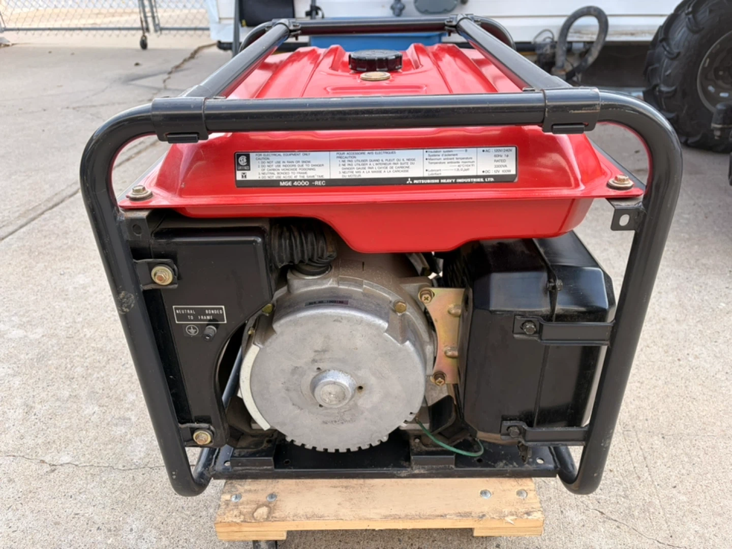 Mitsubishi MGE 4000 generator. Electric and pull start, AC 120/240 volt, 60 HZ, 3300VA. DC 12V, 100W. Works great. No battery. In excellent condition. Very clean. Comes with a 4-wheel rolling dolly as shown. Can deliver to Edmonton for $50.