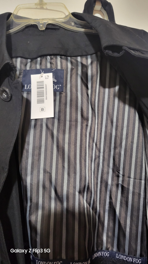 Selling a London Fog black trench coat with removable liner in size 44 regular. Large inside pockets. It's in perfect condition and ready for a new home!