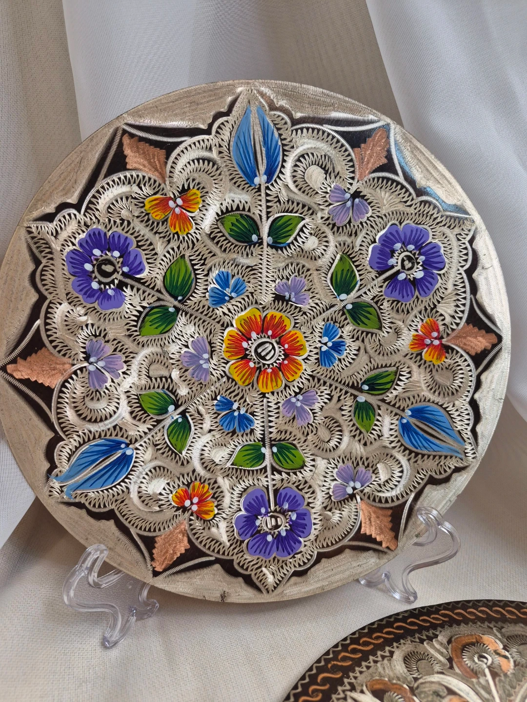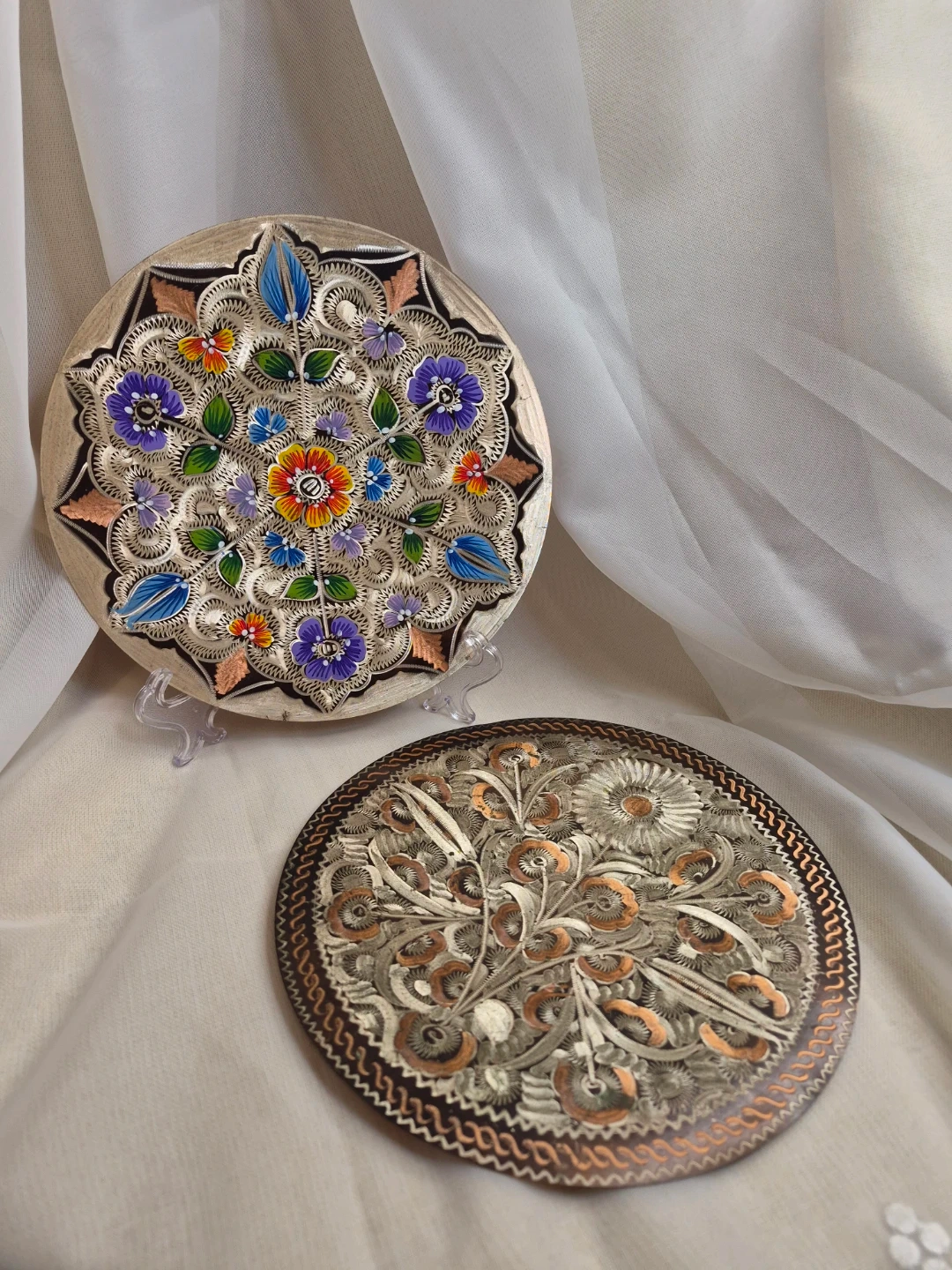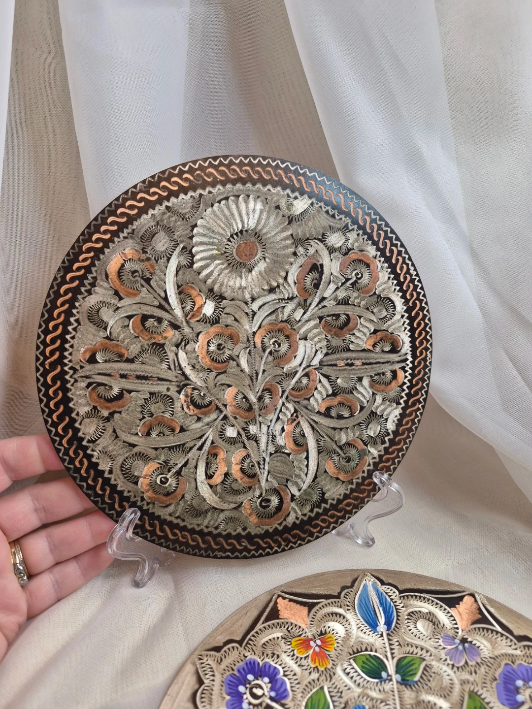 Pair of Beautiful Vintage 7 1/2" Etched Copper Wall Plates Decor Excellent Vintage Condition please see all pictures selling both together
