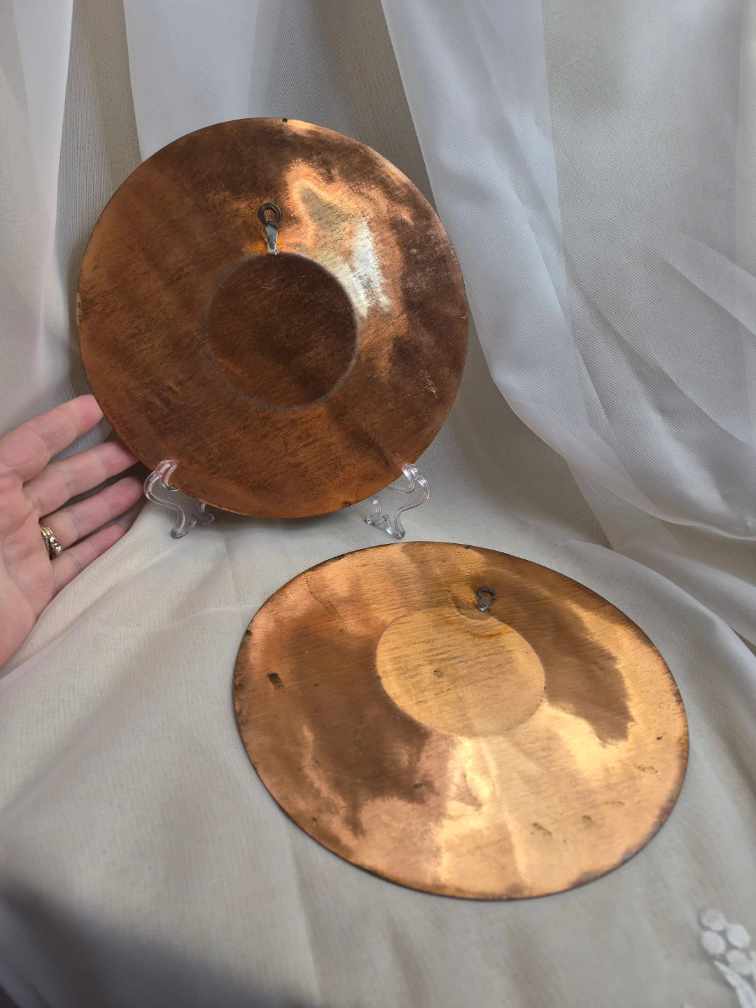 Pair of Beautiful Vintage 7 1/2" Etched Copper Wall Plates