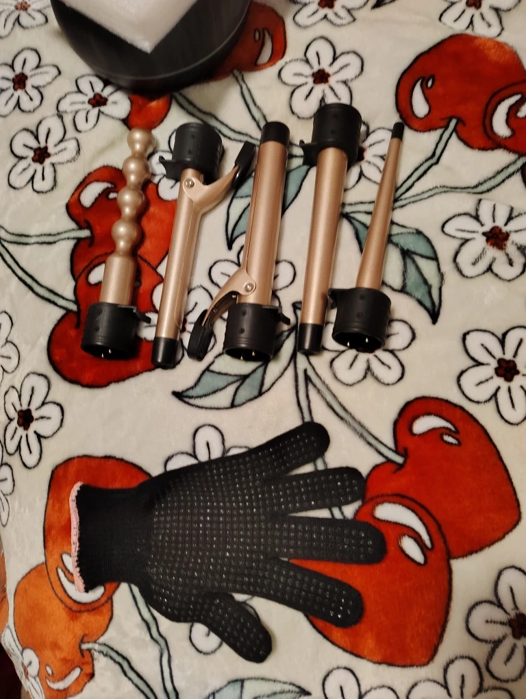 Selling a hair curling iron interchangeable wands for different curl types and a heat-resistant glove to protect your hand while styling
