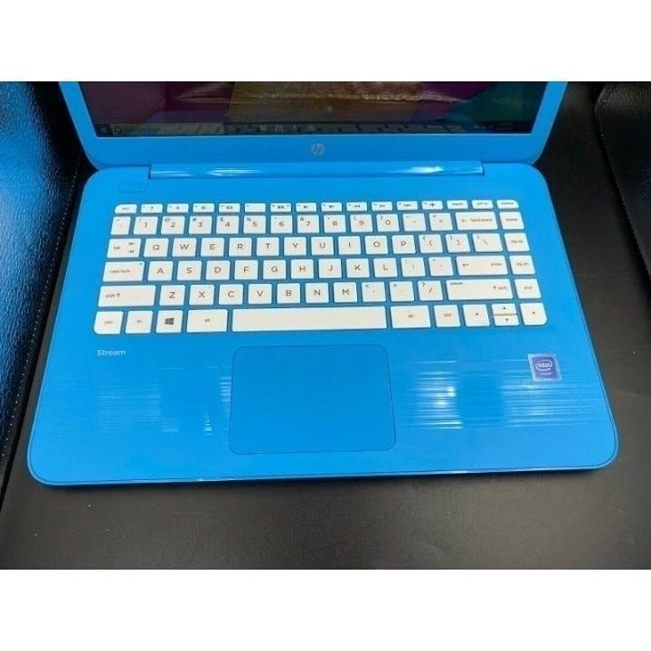 HP Stream 14in Laptop with 4GB RAM and 32GB SSD, running Windows 10. Great for school, work, or entertainment. Stream videos, video chat, listen to music, and more. Features include Bluetooth, Microphone, Webcam, Wi-Fi, HDMI, USB Ports, SD card Reader, and Headphone Jack. Charger is included. Laptop works 100%. Very clean, excellent cosmetic and working condition. Model: HP Stream 14-ax010wm. Color: Blue. Screen Size: 14 in. Maximum Resolution: 1366 x 768. Connectivity: USB 2.0, HDMI, USB 3.