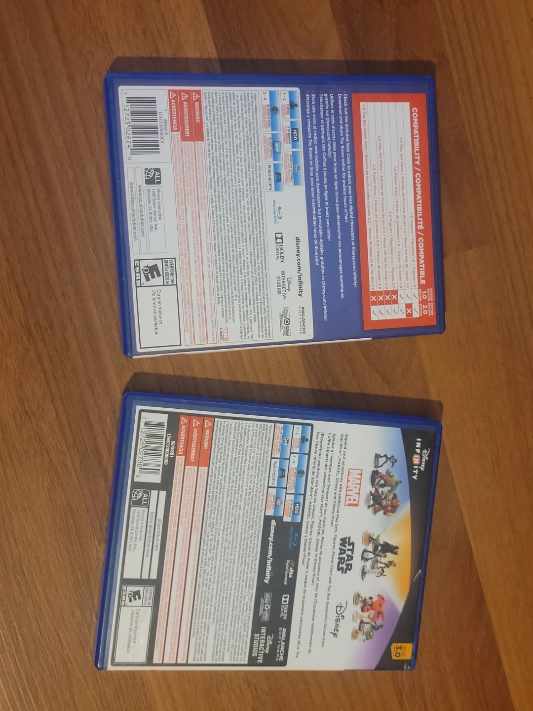 Up for sale are two used Disney Infinity games for the PlayStation 4, versions 2.0 and 3.0! Both games are in good condition and ready for a new adventure. These editions are perfect for expanding your Disney Infinity collection or starting a new one. I'm asking for a fair price, reflecting their good condition and the fun they're sure to bring.