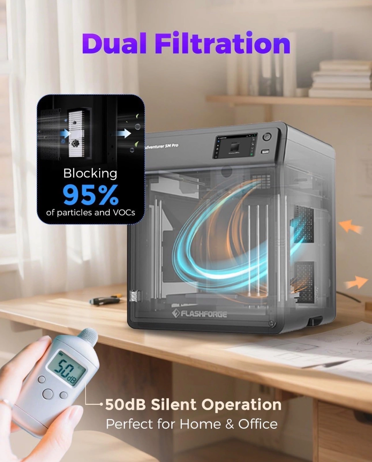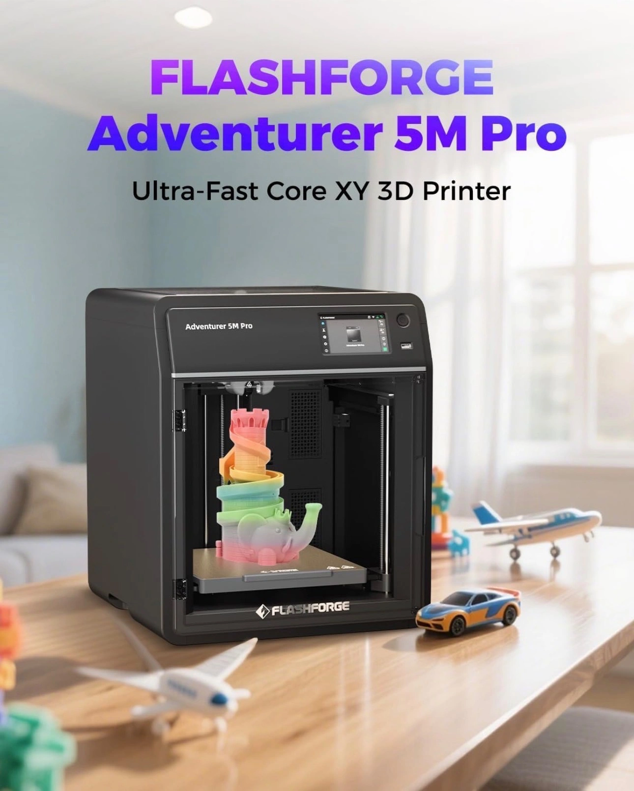 FLASHFORGE Adventurer 5M Pro 3D Printer,Max 600mm/s High-Speed Printing,Auto Leveling,280°C Direct Extruder,0.4&0.6mm Nozzles,Remote Control&Camera Monitoring,HEPA Air Filtration,220x220x220mm