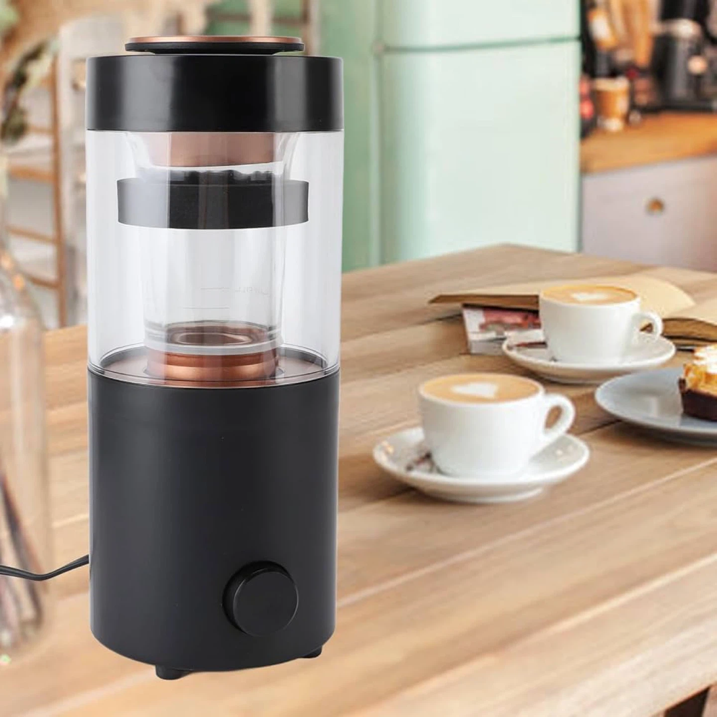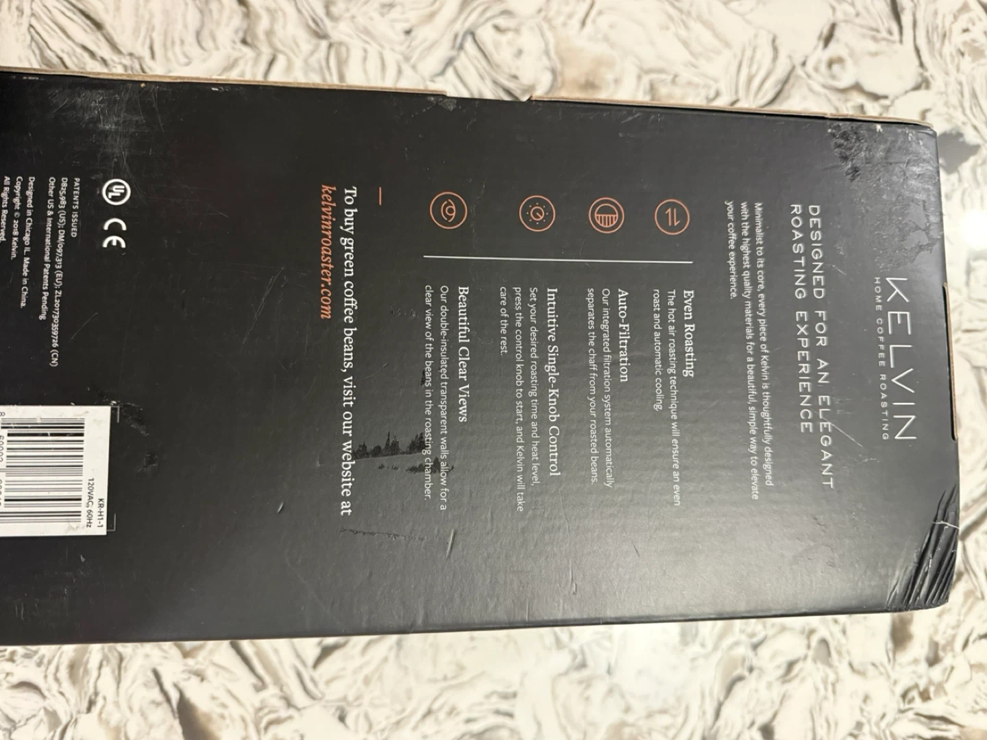 This brand new Kelvin coffee bean roaster makes home roasting a breeze. Its compact design holds a good amount of beans for fresh roasts. Easy to use with a single button operation!
