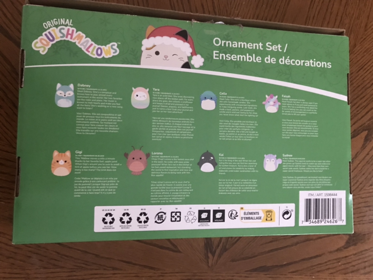 Selling a super cute Squishmallows Ornament Set from the Holiday Bright Collection! This set includes 8 adorable, small Squishmallows, each about 4 inches in size. They're perfect for decorating or just adding some cuddly cheer to your space. Excellent condition.