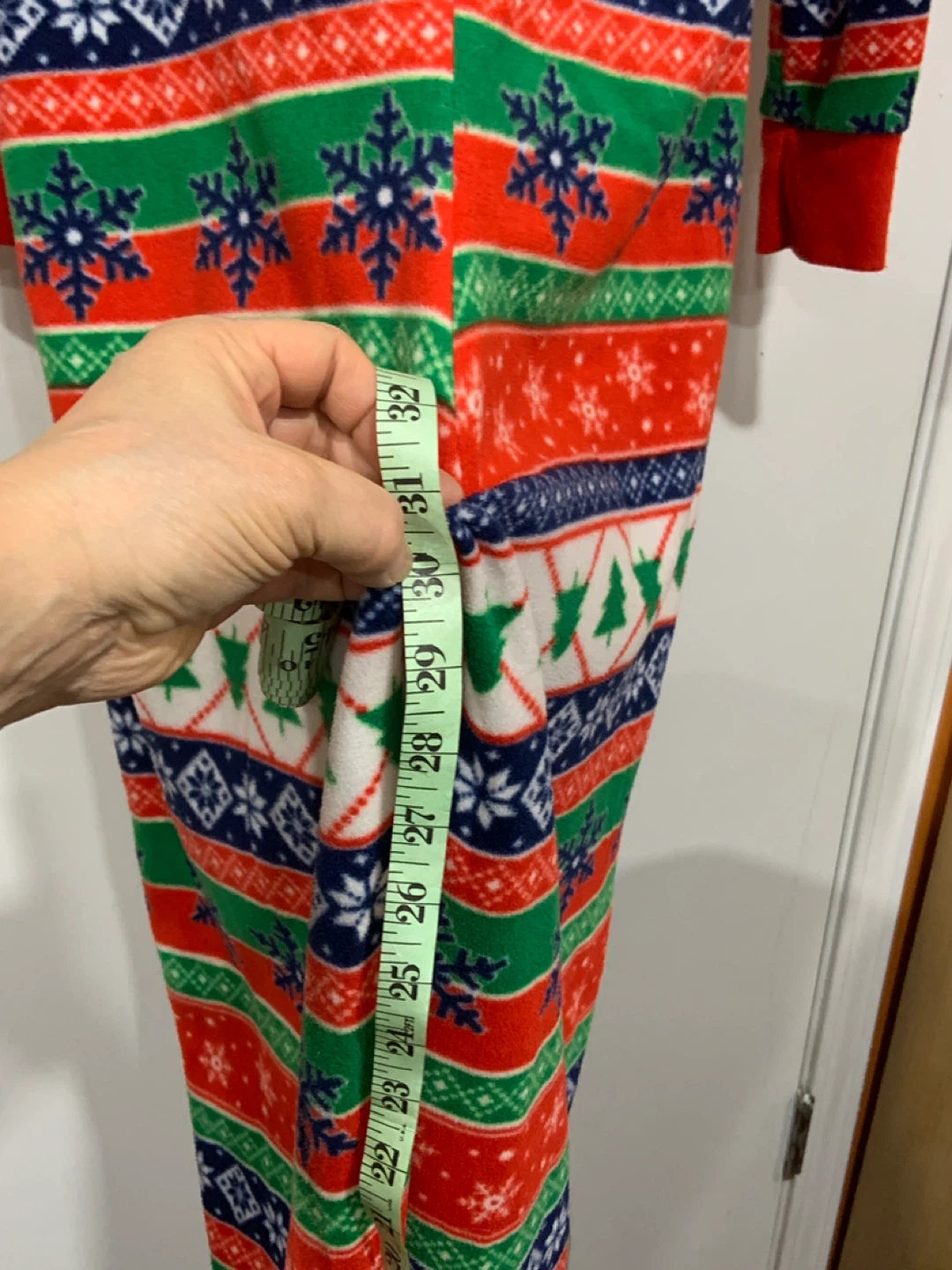 Cozy festive hooded onesie pajamas for those cold winter nights. Made of 100% polyester fleece for ultimate comfort. Perfect for lounging around the house!