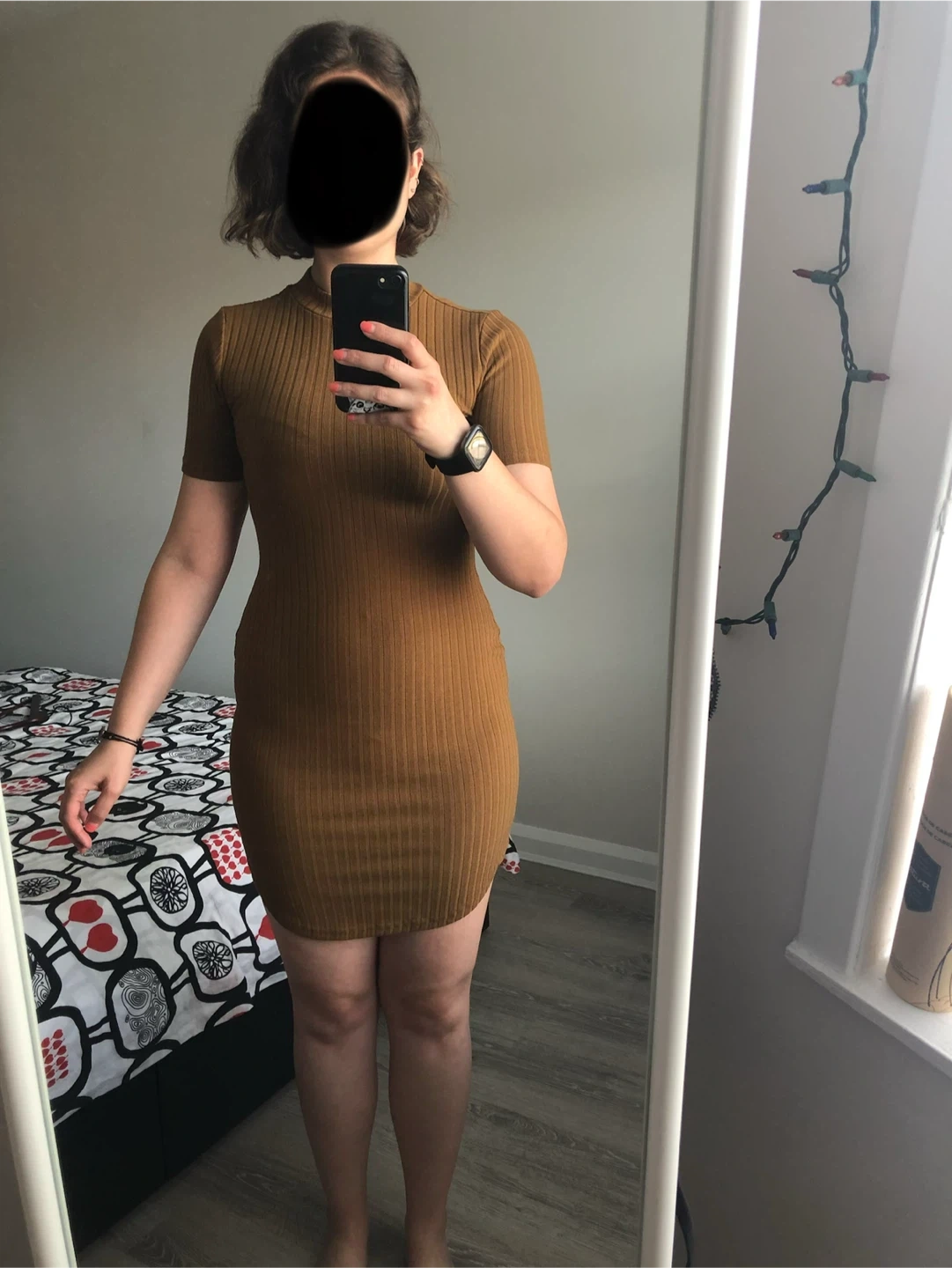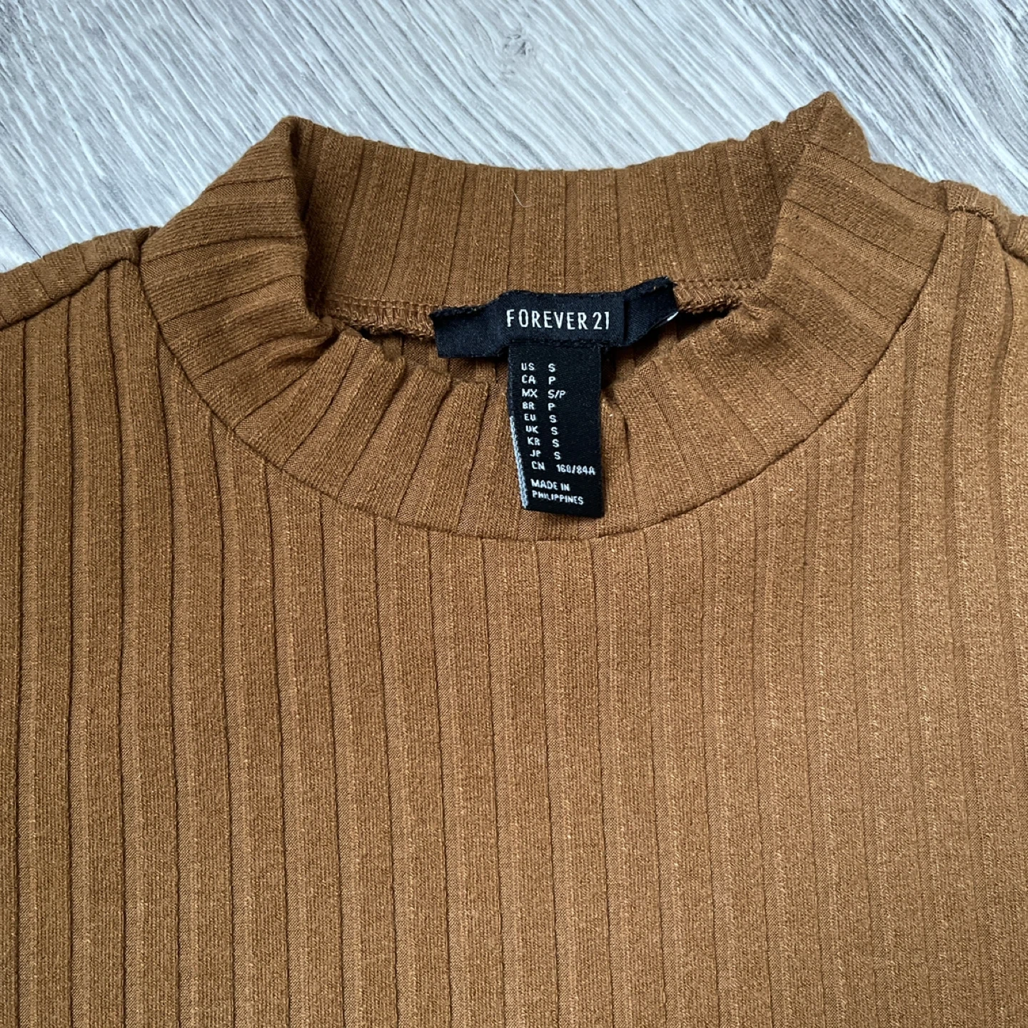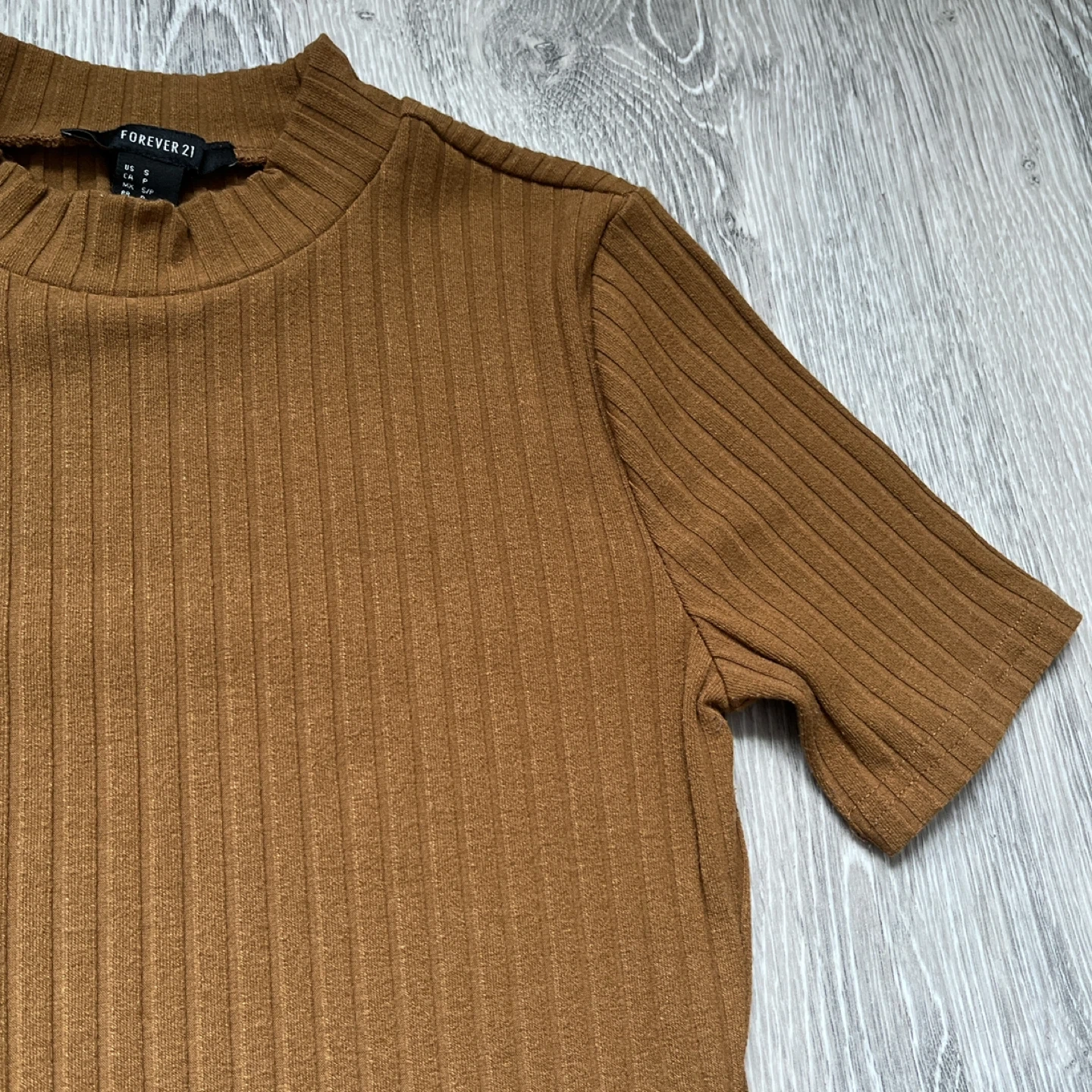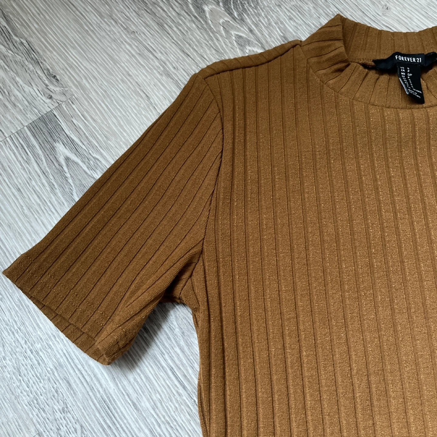 Cute and versatile Forever 21 brown short sleeve bodycon mini dress in a ribbed texture.