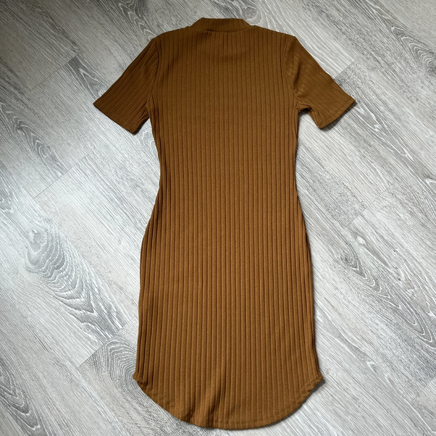 Cute and versatile Forever 21 brown short sleeve bodycon mini dress in a ribbed texture.