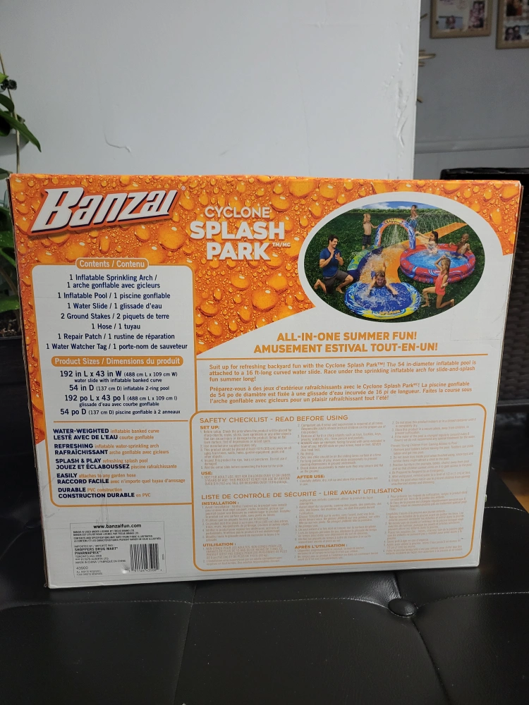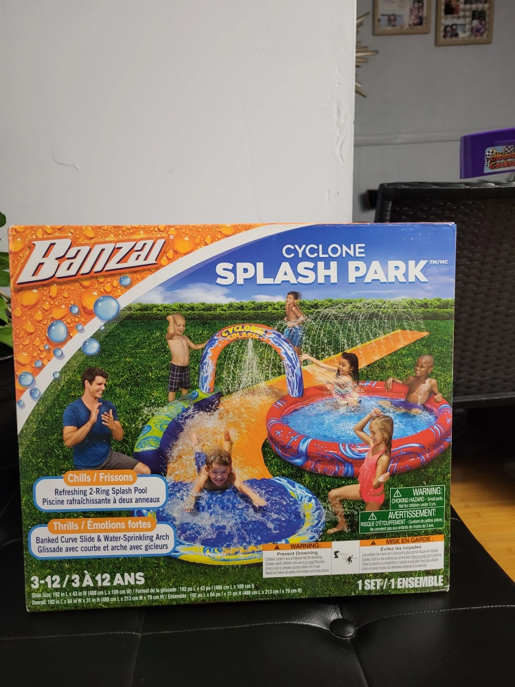 Inflatable water park with a slide, water arch, and pool. Recommended for ages 3-12. Brand New In A Box. Never opened or use. For pick up only.