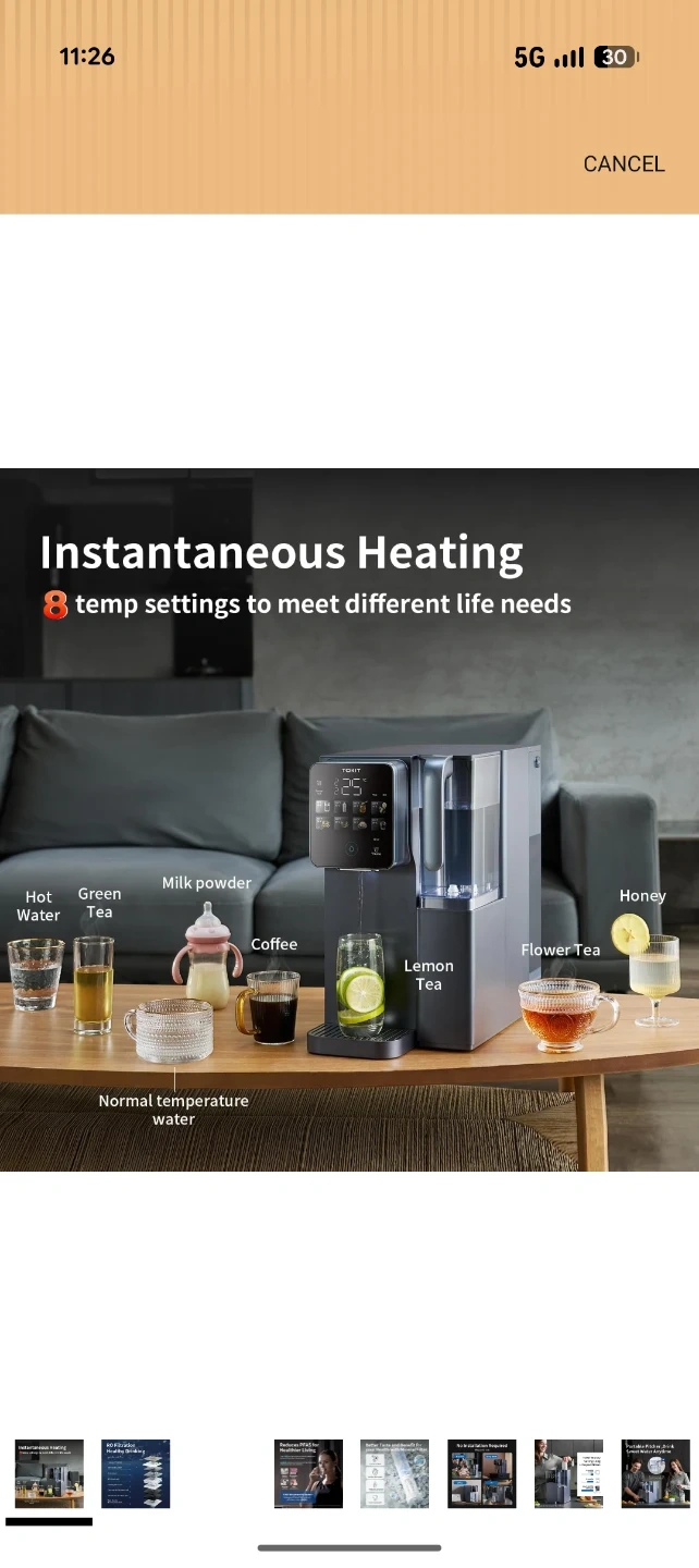 This water filter system offers RO filtration for healthier drinking water. It features instant heating with 8 temperature settings to meet different needs, and no installation is required. It reduces PFAS, Arsenic, Chromium, and Fluoride for better taste and health benefits.