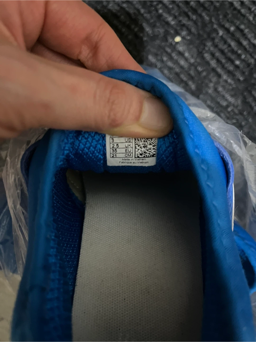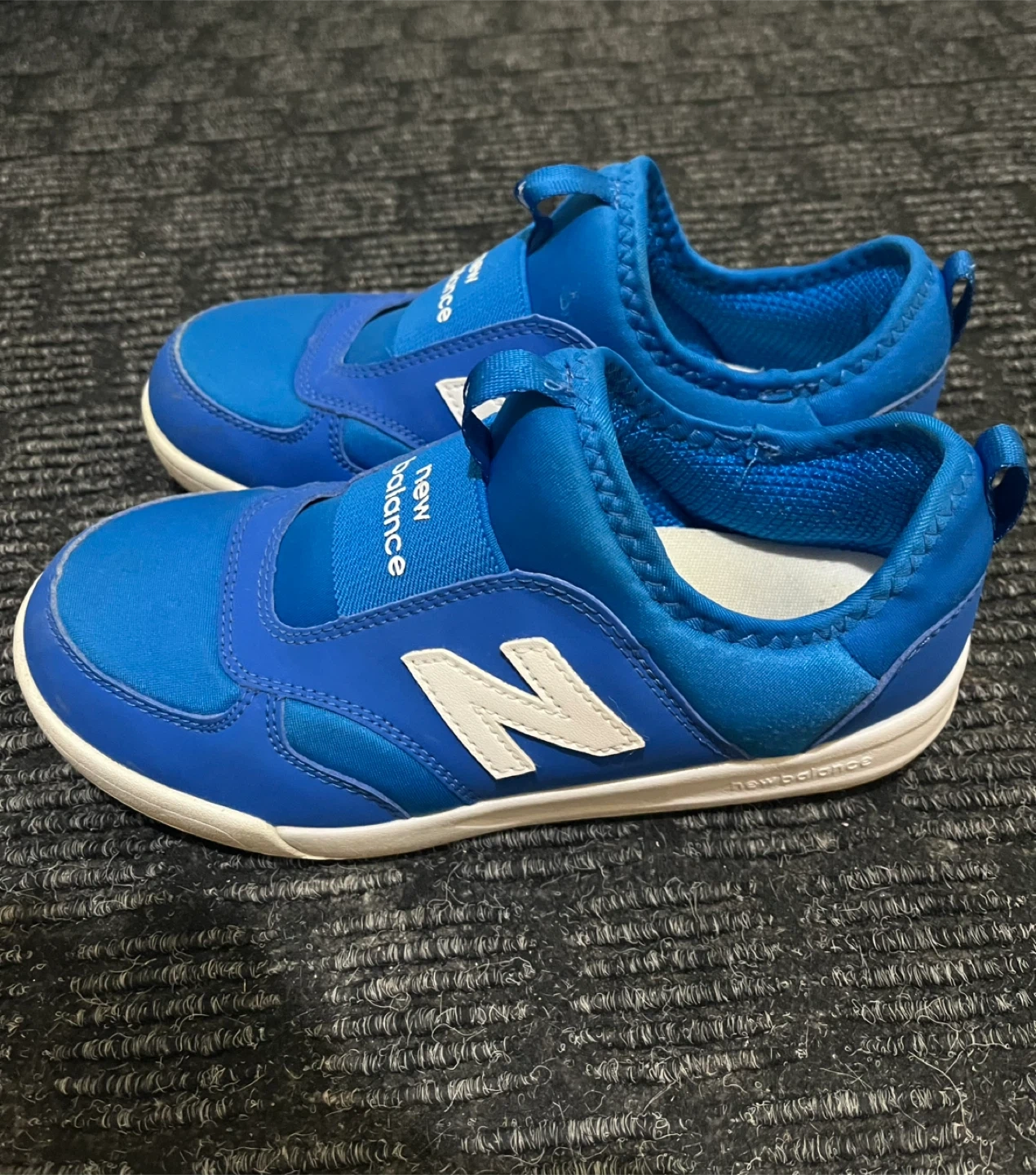 Blue New Balance slip-on shoes for kids. Made in Vietnam. These are easy to put on and take off, great for active little ones.