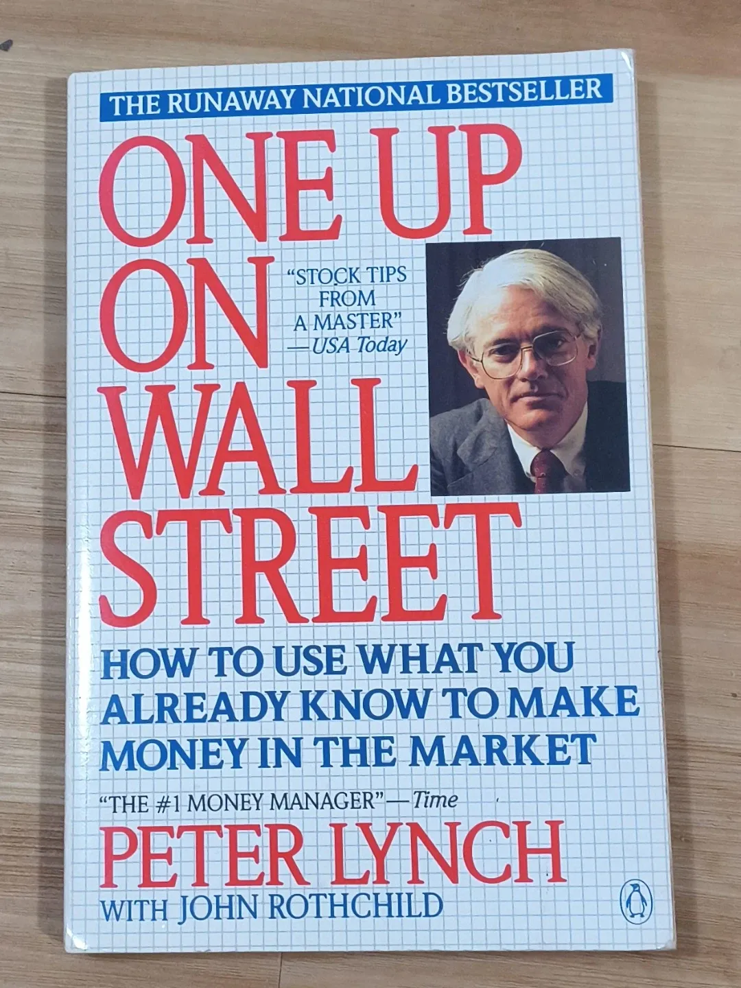 This is the national bestseller "One Up On Wall Street" by Peter Lynch. It's a guide on how to use what you already know to make money in the market. Written with John Rothschild.