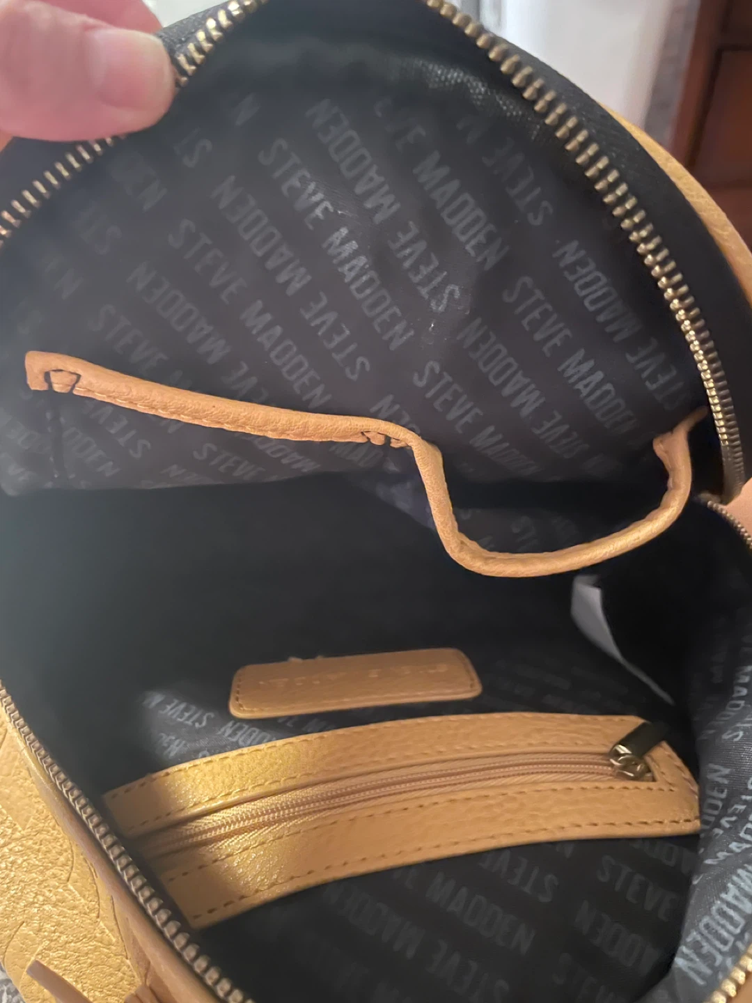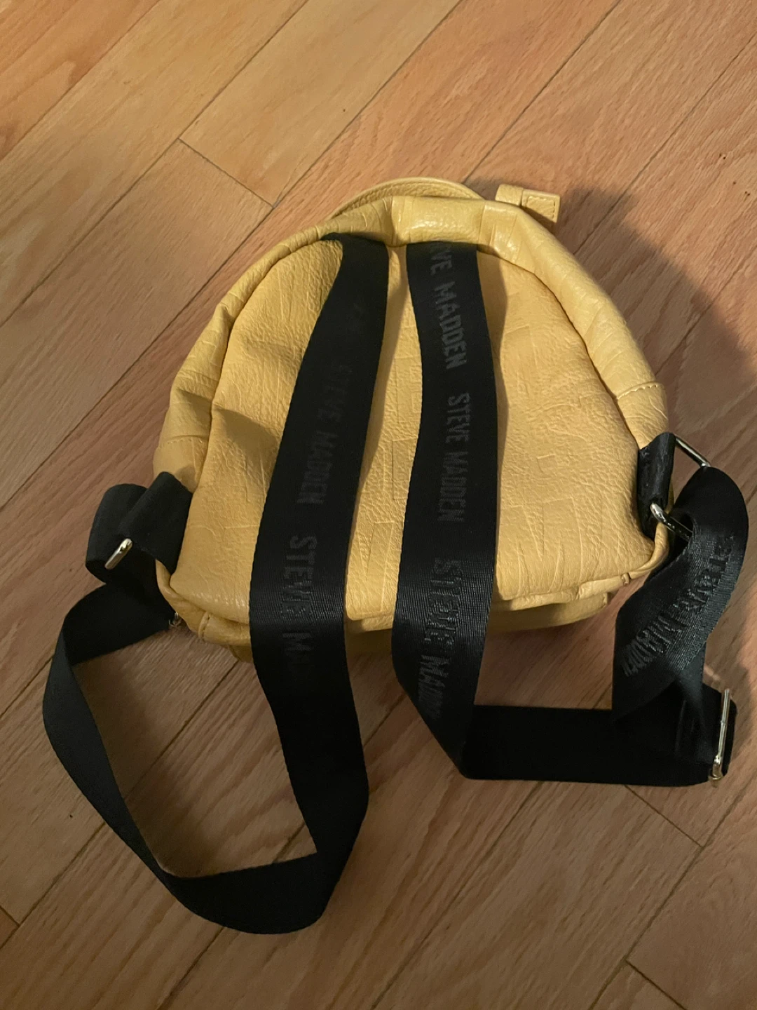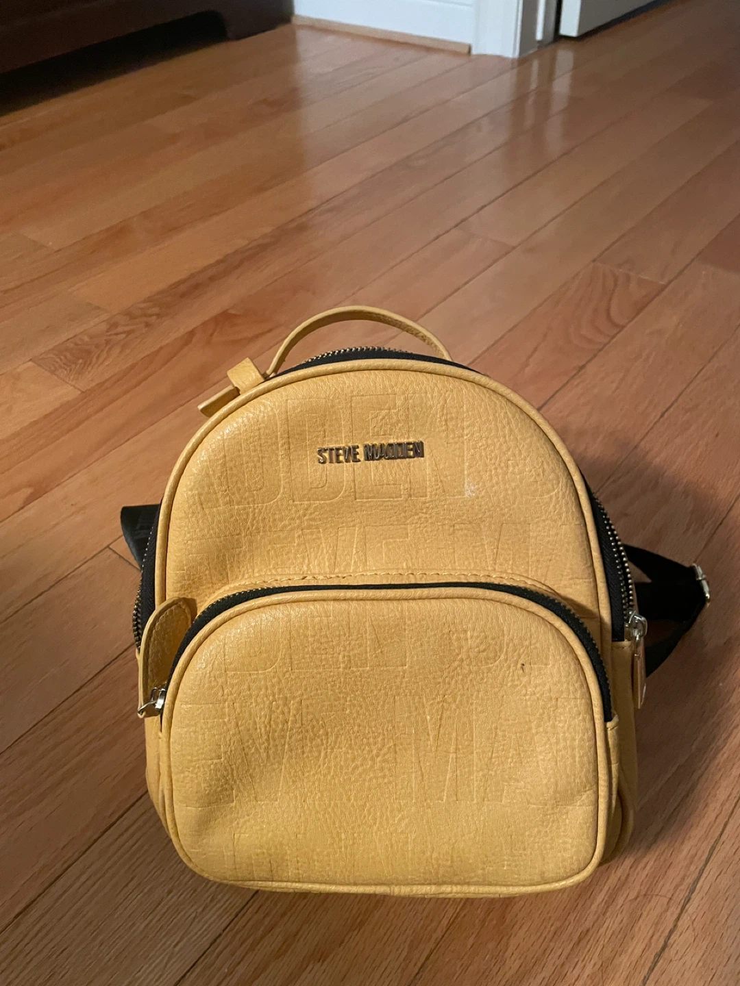 Selling a cute Steve Madden yellow backpack. It's in great condition and perfect for carrying your essentials around town! The interior has the Steve Madden logo printed all over.