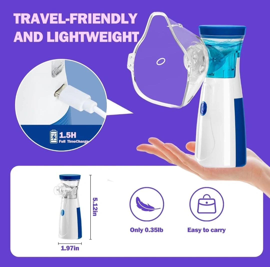 Handheld Nebulizer Machine for Adult Women Men and Kids, Silent Operation, Compact, Easyto-Clean for Home and Travel Usage.