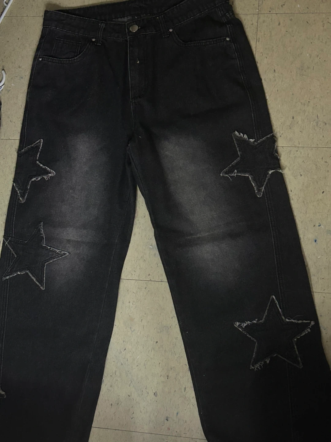 Buy & SellBlack Wide Leg Jeans with Star CutoutsBlack Wide Leg Jeans with Star Cutouts$15These black denim jeans feature a wide leg fit. They're adorned with star-shaped cutouts on the legs. Denim material.WHERE TO MEETCheck LocationView MapSELLERydkkWeston252 reviews0 chats·0 favorites·15 viewsSEND CHAT TO SELLERHi ydkk! I’m interested in your listing.Hi ydkk! I’m interested in your listing.Get the Karrot app to chatSign In to chat