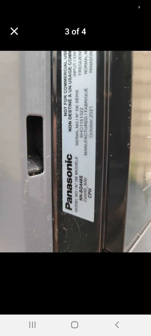 Used Panasonic microwave in good working condition, perfect for any kitchen! It’s a compact 0.9 cu. ft. size with 900W of cooking power. The dimensions are approximately 19 15/16" x 14 3/4" x 11 9/16".