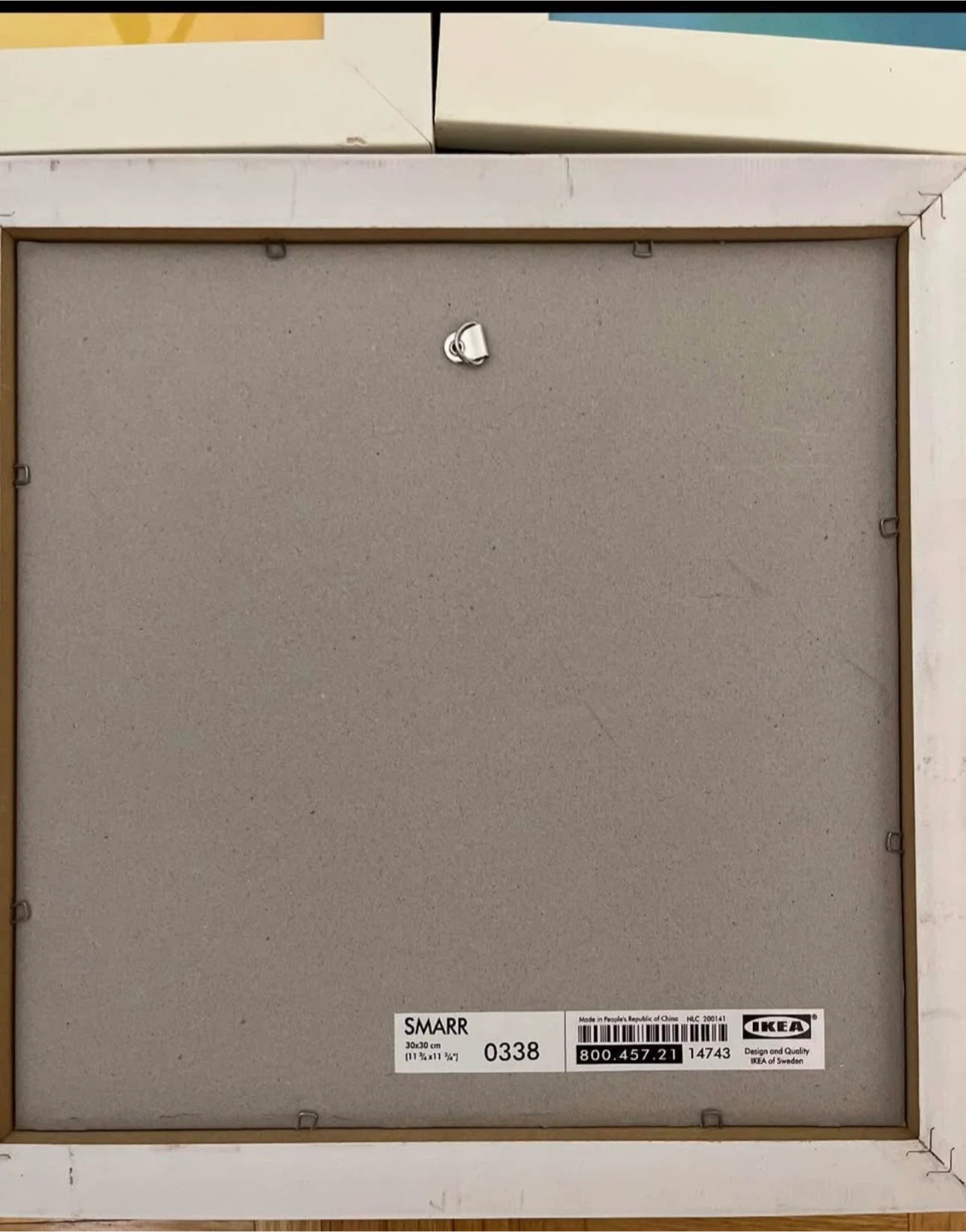 Set of three framed prints from IKEA featuring fun, stylized farm animals. Each print measures 20x20 cm (8x8 inches). Perfect for a child's room or nursery!