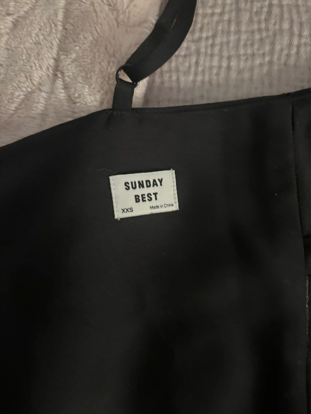 This Sunday Best black halter top is a size XXS. The fabric is lightweight, perfect for warmer weather!