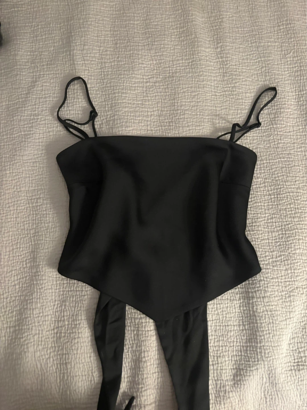 This Sunday Best black halter top is a size XXS. The fabric is lightweight, perfect for warmer weather!