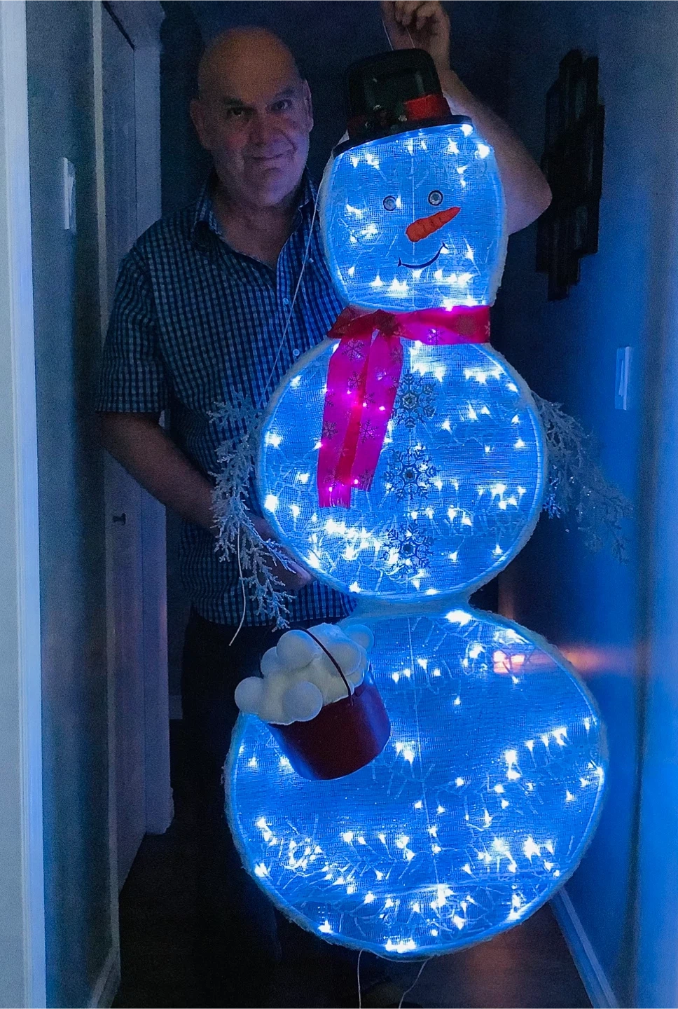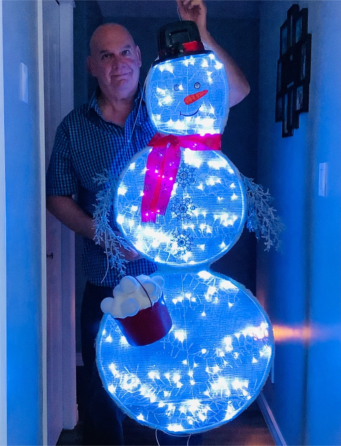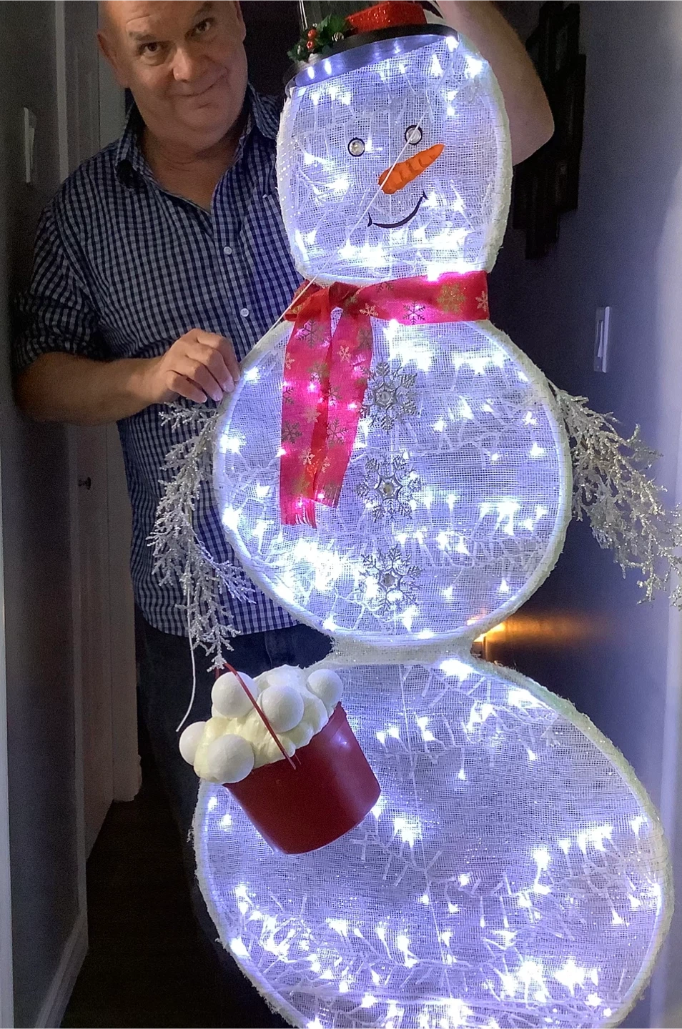 A fun lighted snowman decoration for the holidays! It's in great shape and ready to add some festive cheer to your home. Impressive display for your home entry, party venue, Christmas Party