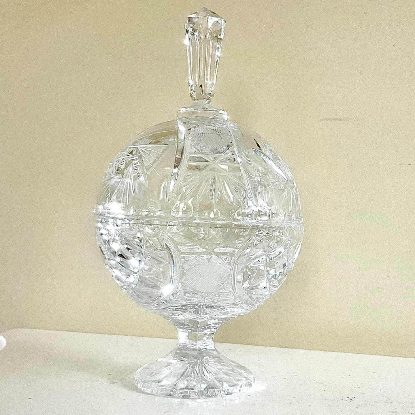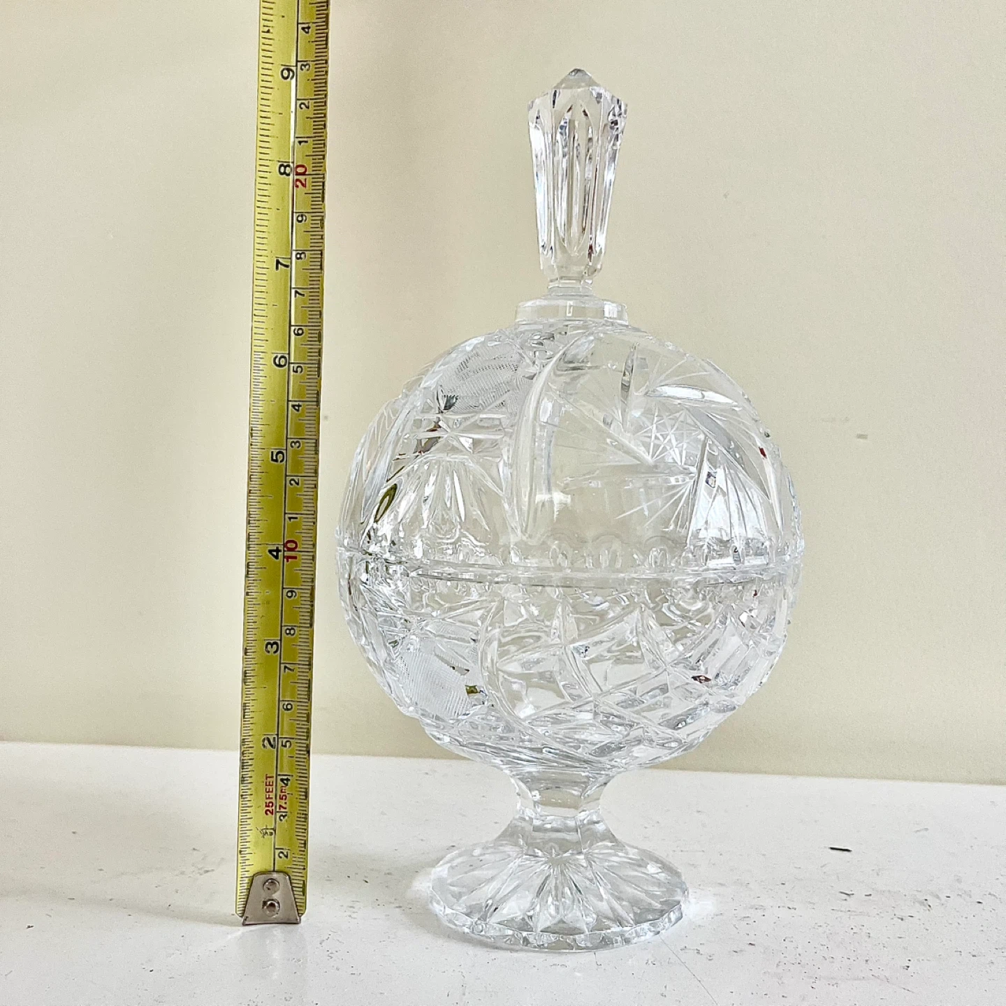 Mid-century Polonia 24% Lead cut crystal candy dish, made in Poland
