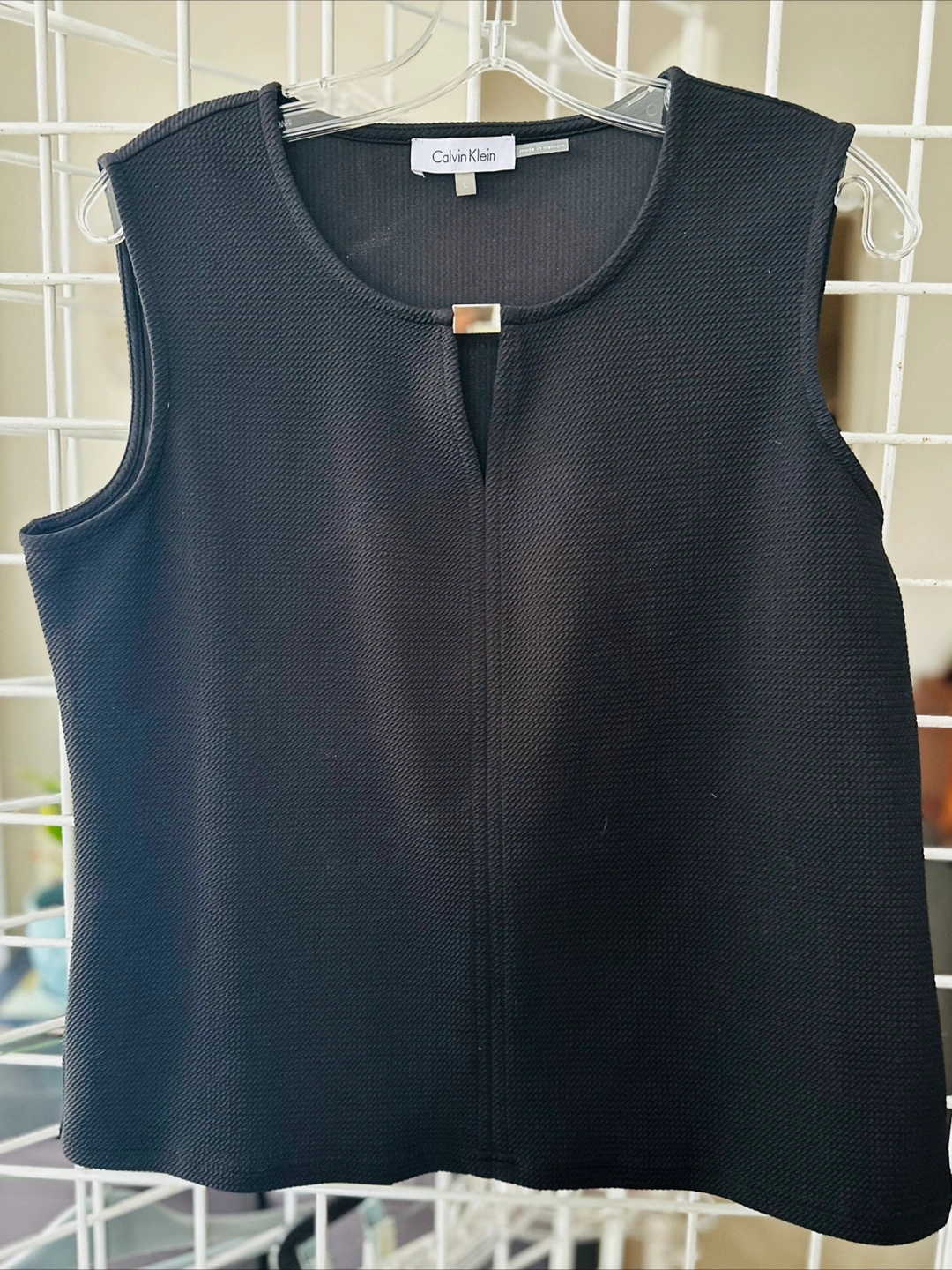 Selling a Calvin Klein black sleeveless top in size L. It's in great condition and ready for a new home!