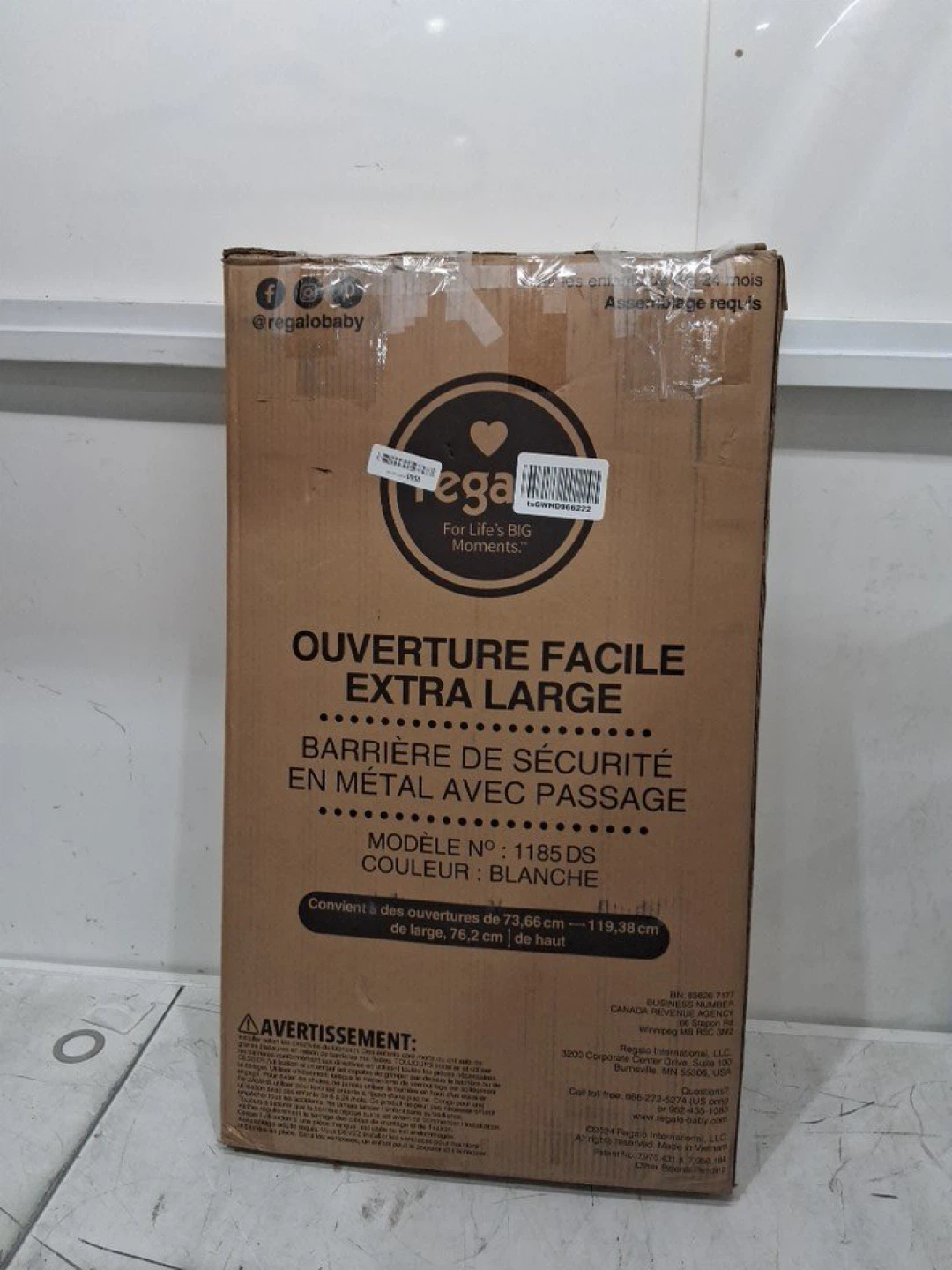 This Regalo safety gate is extra large and made of metal. It fits openings from 29 to 47 inches wide and is 30 inches tall. It's ideal for keeping little ones safe at home. Easy to install and use!