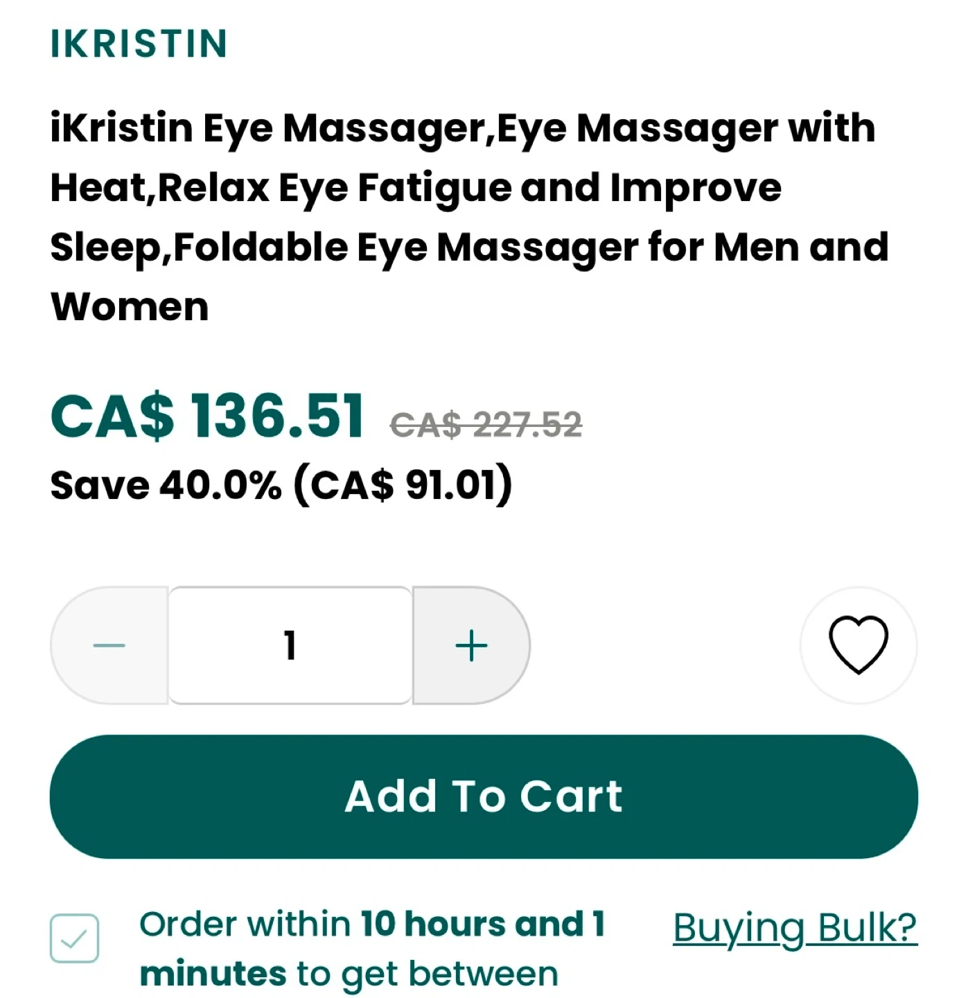 This iKristin eye massager helps relax eye fatigue and improve sleep. It's foldable and designed for both men and women. Features include heat functionality for a soothing experience.
