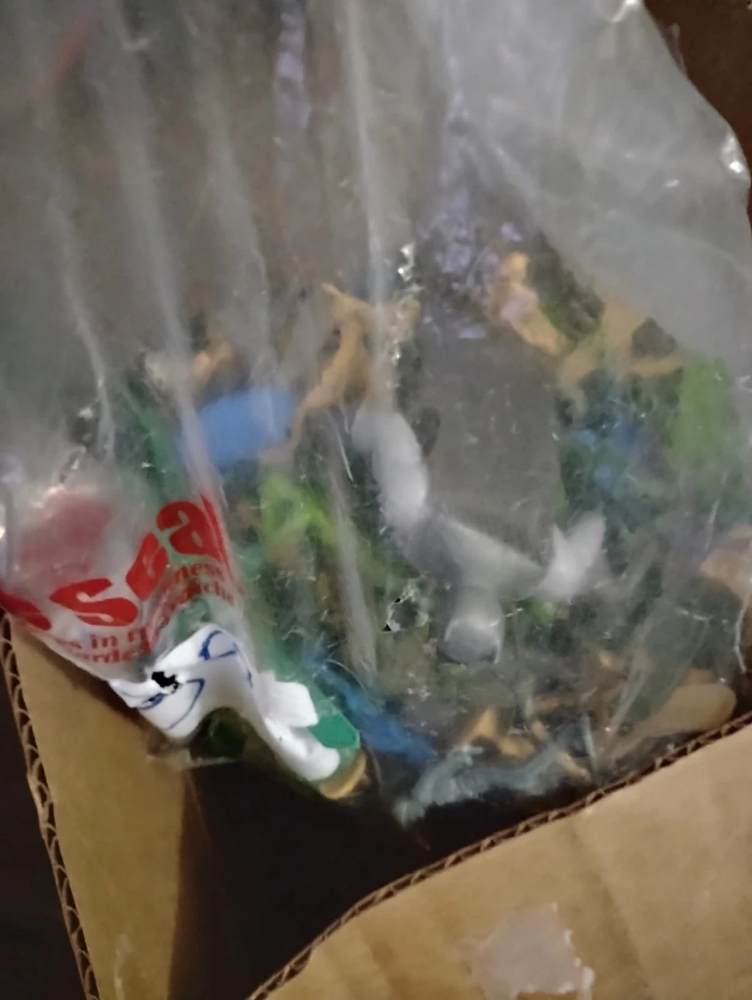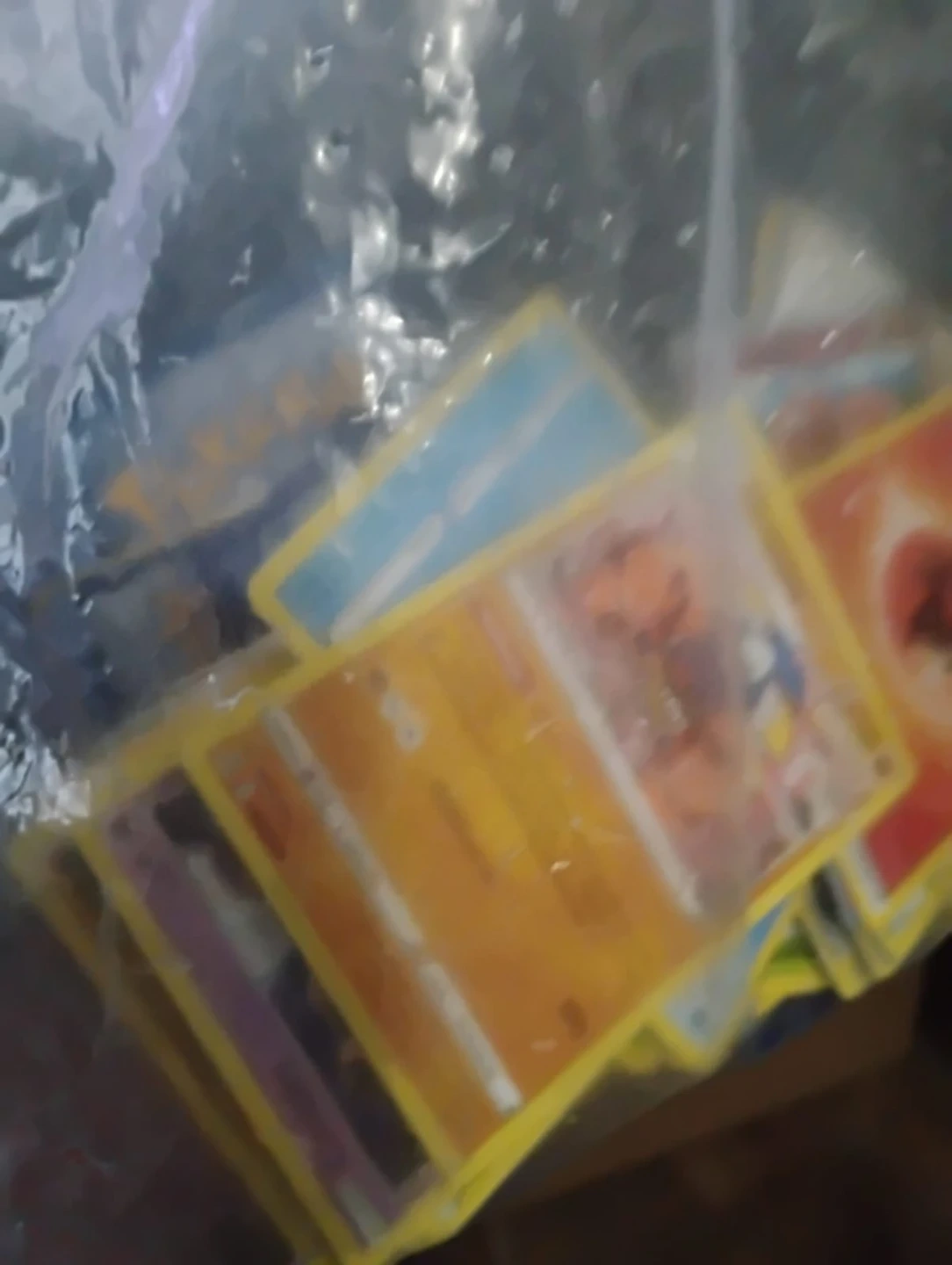 A collection of various toys, featuring Pokémon trading cards and a mix of action figures and toy soldiers. Great for imaginative play or starting a collection!
