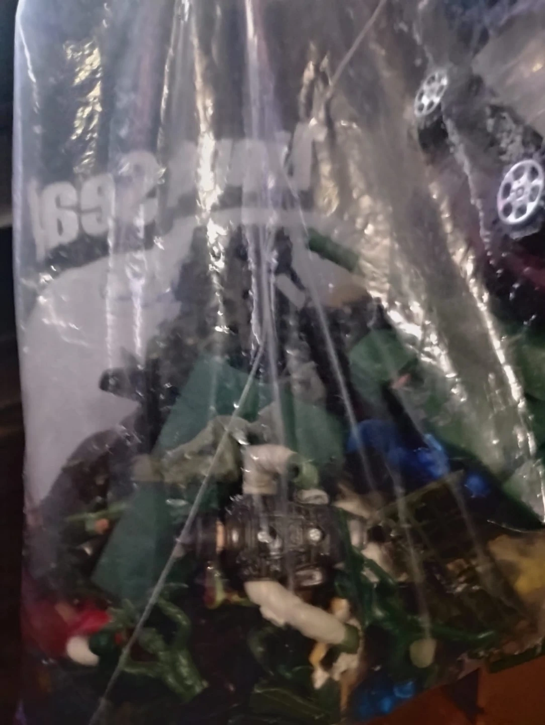 A collection of various toys, featuring Pokémon trading cards and a mix of action figures and toy soldiers. Great for imaginative play or starting a collection!
