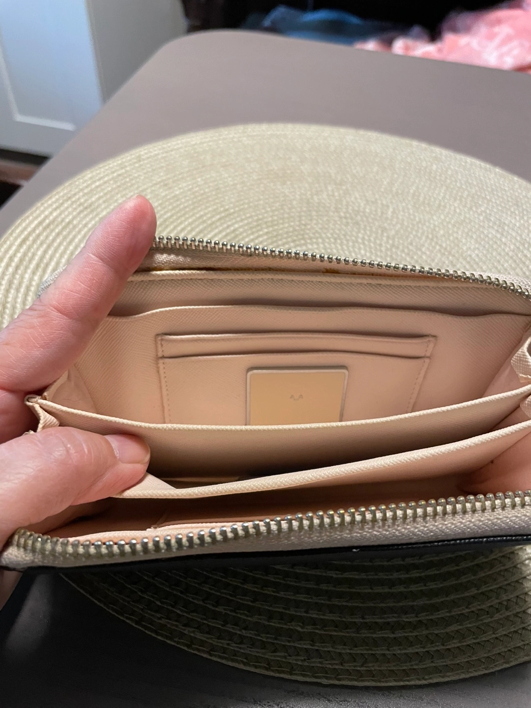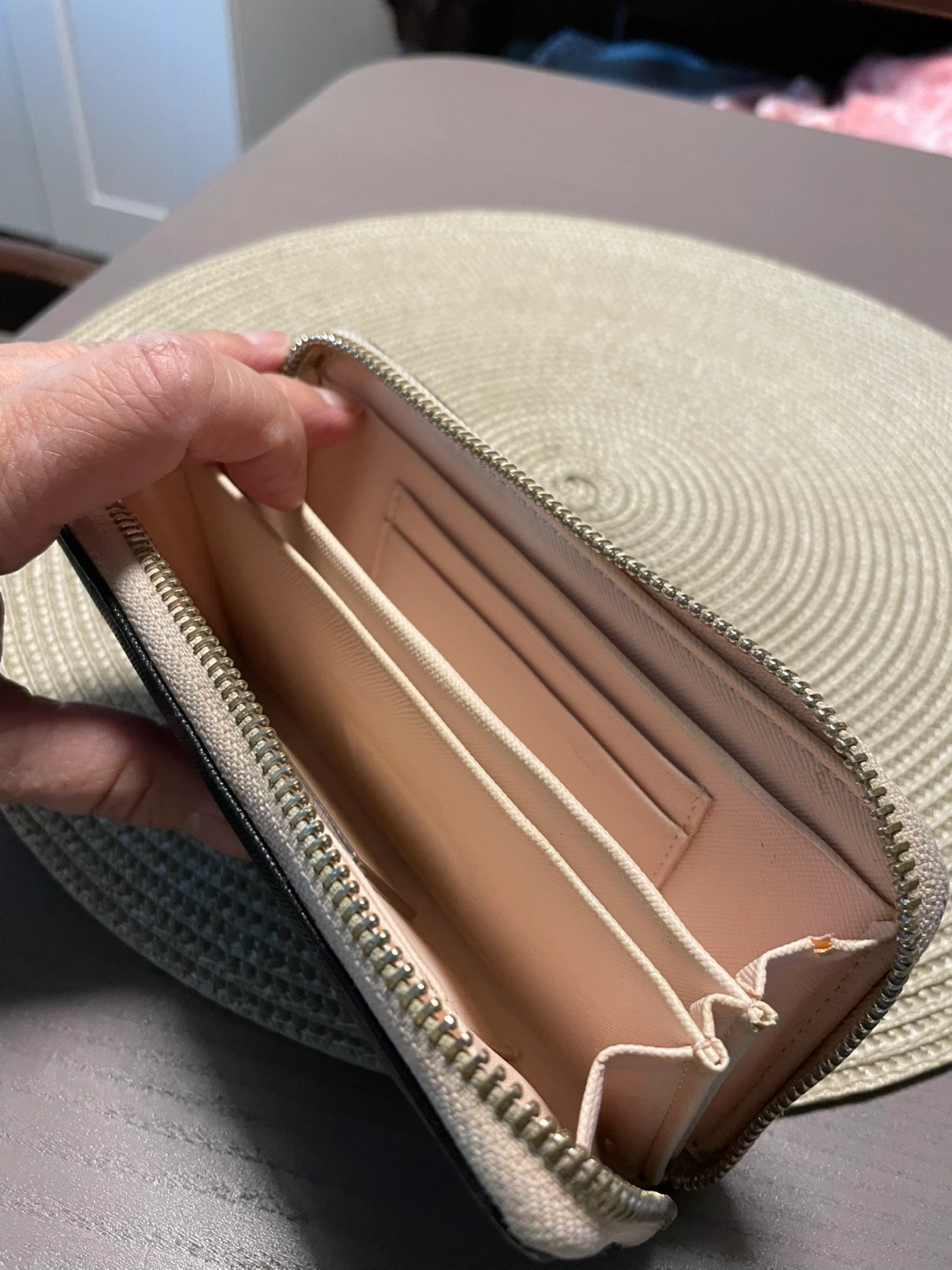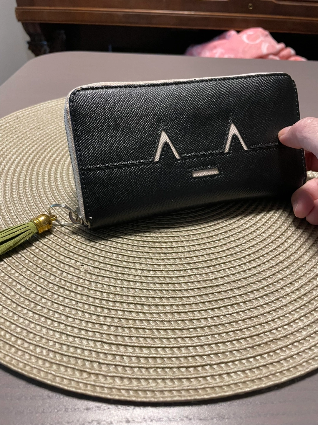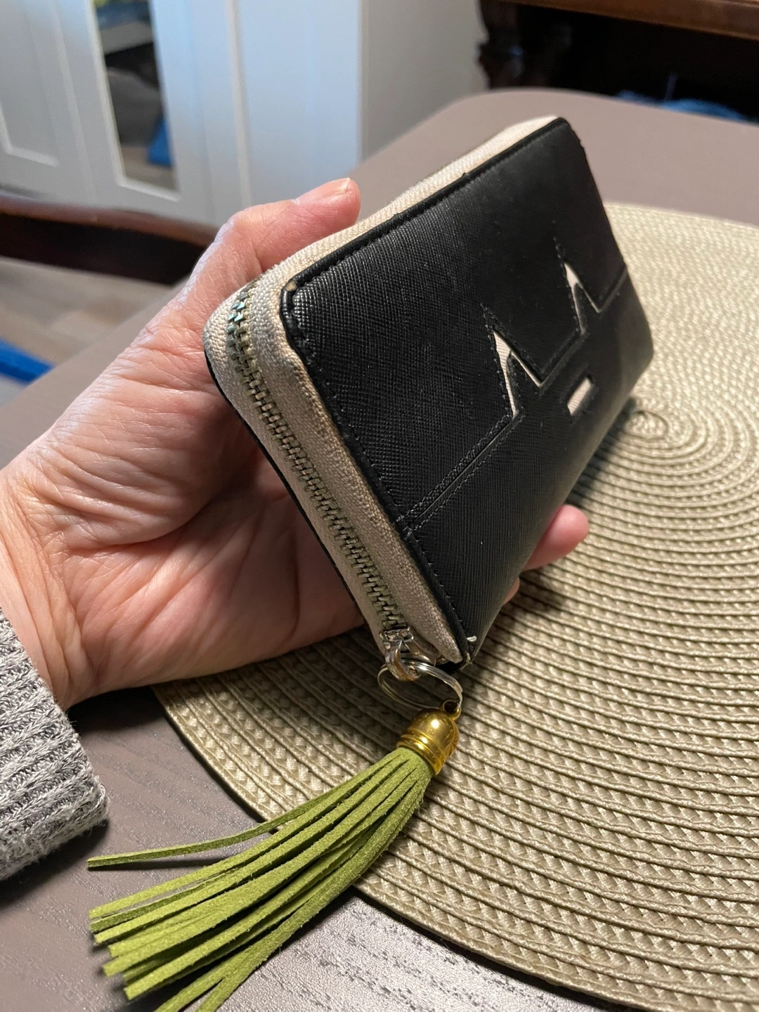Black and Beige Zip Around Wallet with Tassel
