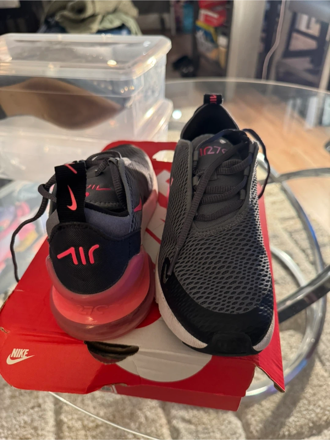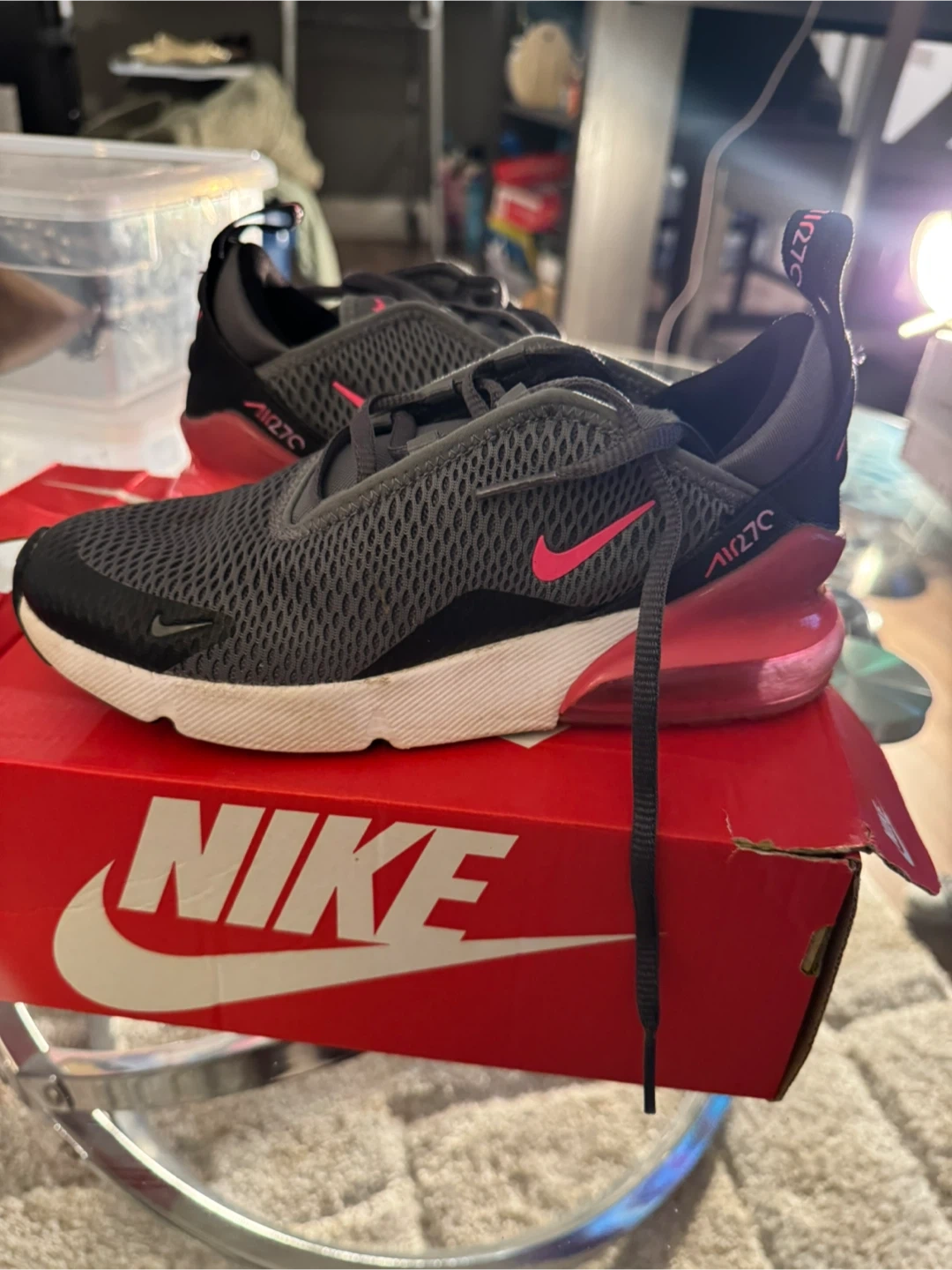 Buy & SellNike Air Max 270 - Gray/PinkNike Air Max 270 - Gray/Pink$45Selling a pair of Nike Air Max 270 sneakers in gray and pink. They come with the original box!ConditionGoodSize3YBrandNikeWHERE TO MEETWhite Plains LibraryView MapSELLERverifiedTammieWhite Plains650 reviews0 chats·0 favorites·11 viewsSEND CHAT TO SELLERHi Tammie! I’m interested in your listing.Hi Tammie! I’m interested in your listing.Get the Karrot app to chatSign In to chat