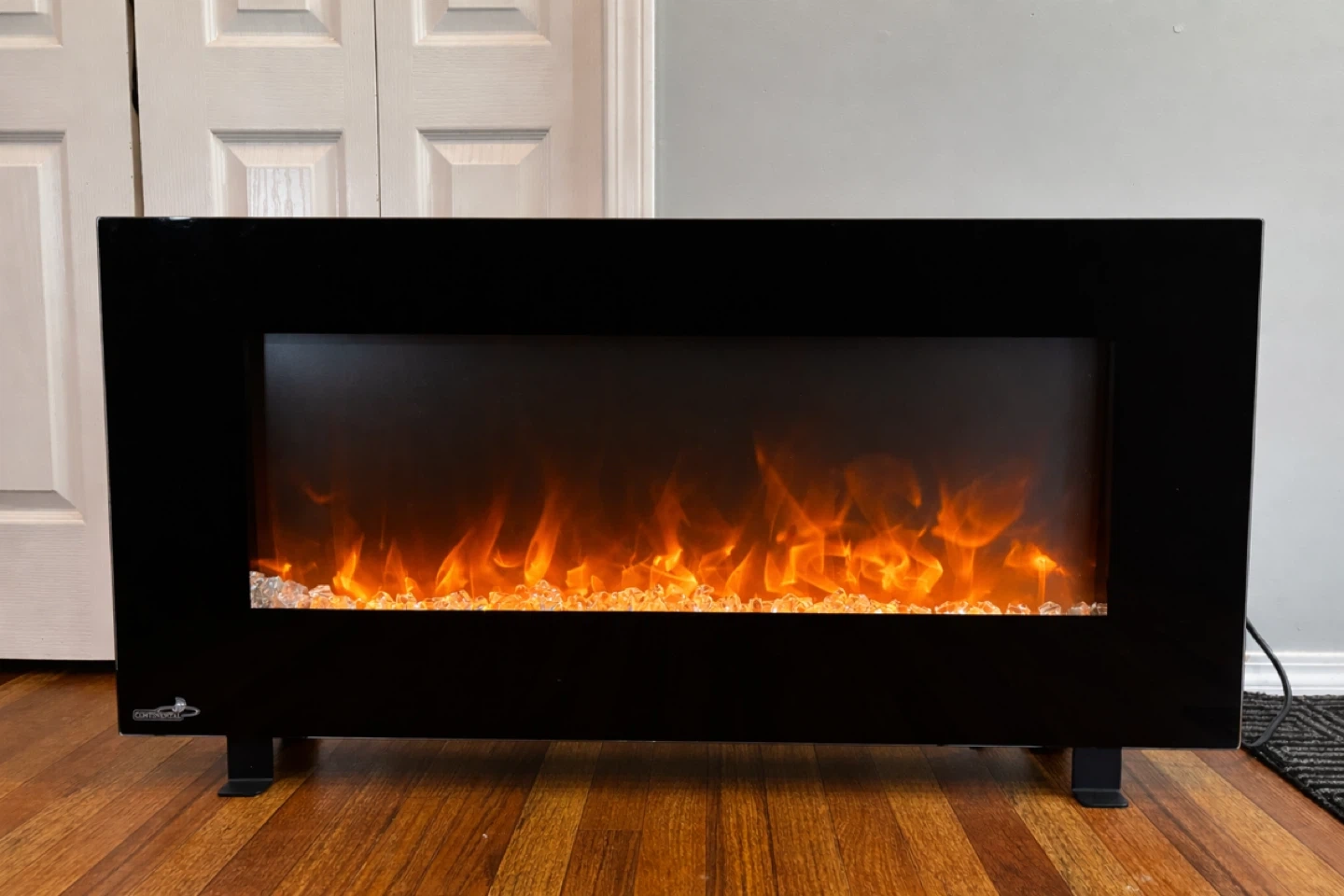 Selling a 42-inch Continental electric fireplace in excellent condition. Heater works perfectly and flame effects look great. Clean, modern design with glass front.